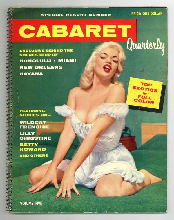 Published 1956 by Publisher's Development Corporation.$40.00Issue 5 - 1956. Published quarterly as a special edition of Cabaret focusing on dancers in exotic locals. Includes a Lilly Christine article. Jayne Mansfield cover. Spiral bound. 8.5" x 11". 72 pages. Black and white. Cover price $1.00.