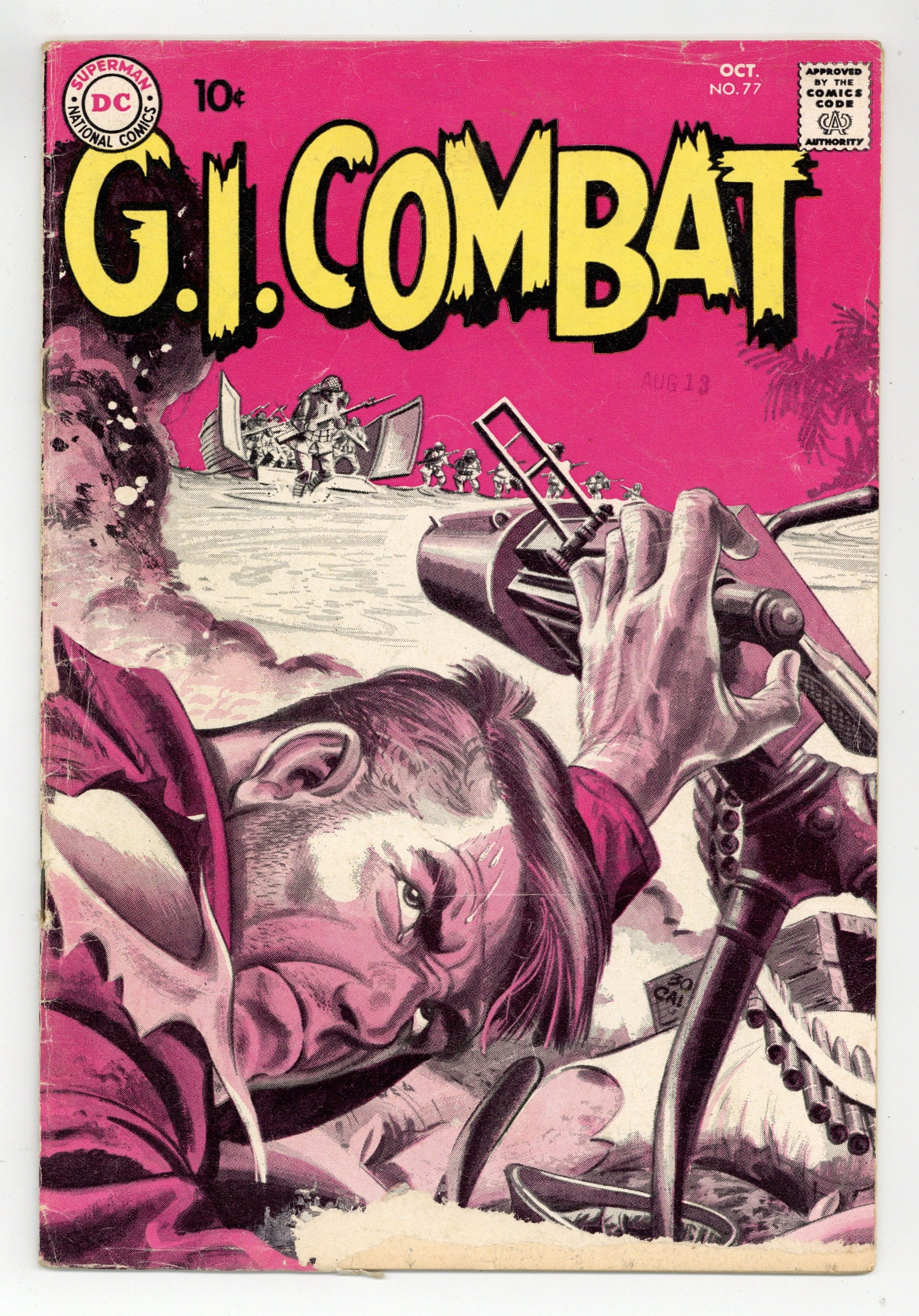 $22.00Cover by Jerry Grandenetti and Jack Adler (washtone). Written by Bob Haney and Hank Chapman. Art by Russ Heath, Joe Kubert, Ross Andru and Mike Esposito. In this issue: "H-Hour for a Gunner!" by Bob Haney and Russ Heath; "Get the Carriers" by Haney and Joe Kubert; "Last on a Match!" by Hank Chapman, Ross Andru and Mike Esposito; and half-pager "Anti-Mine Nets!" 36 Pages, Full Color. Cover price $0.10.