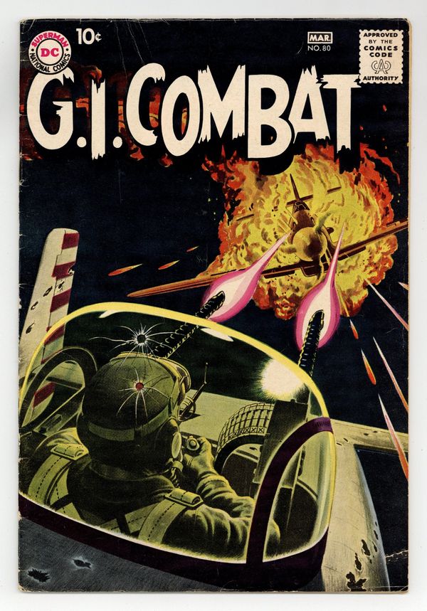 $135.00Cover by Russ Heath and Jack Adler (washtone). Written by Robert Kanigher and Bob Haney. Art by Russ Heath, Jack Abel and Joe Kubert. In this issue: "The Flying Horsemen!" by Robert Kanigher and Russ Heath; "The Nine Second Sub!" by Bob Haney and Jack Abel; "Downhill Soldiers" by Haney and Joe Kubert; and 2-pager "Santa Fe Division...Battle Story of the 35th Infantry Division." 36 Pages, Full Color. Cover price $0.10.