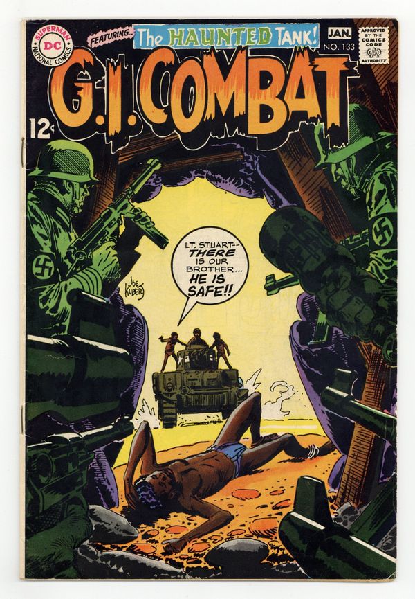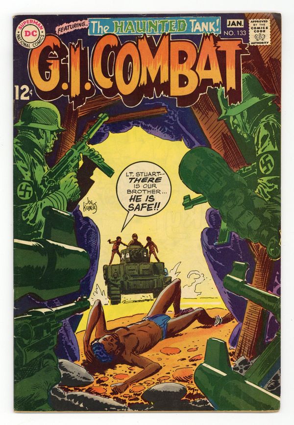 $18.00Cover by Joe Kubert. Written by Robert Kanigher and unknown. Art by Mike Sekowsky, Joe Kubert and Joe Giella. Featuring the Haunted Tank in "Operation: Death Trap" by Robert Kanigher, Mike Sekowsky and Joe Giella with Joe Kubert. Plus: The Haunted Tank "Special Battle Pin-Up!" by Kubert, featuring Jeb Stuart, Rick Rawlins, Arch Asher and Slim Stryker; 2-page Battle Album illo "Panzerkampfwagen I; Pz KpFw. V Panther" by Kubert; and "Suicide Volunteer," with art by Kubert. 36 Pages, Full Color. Cover price $0.12.