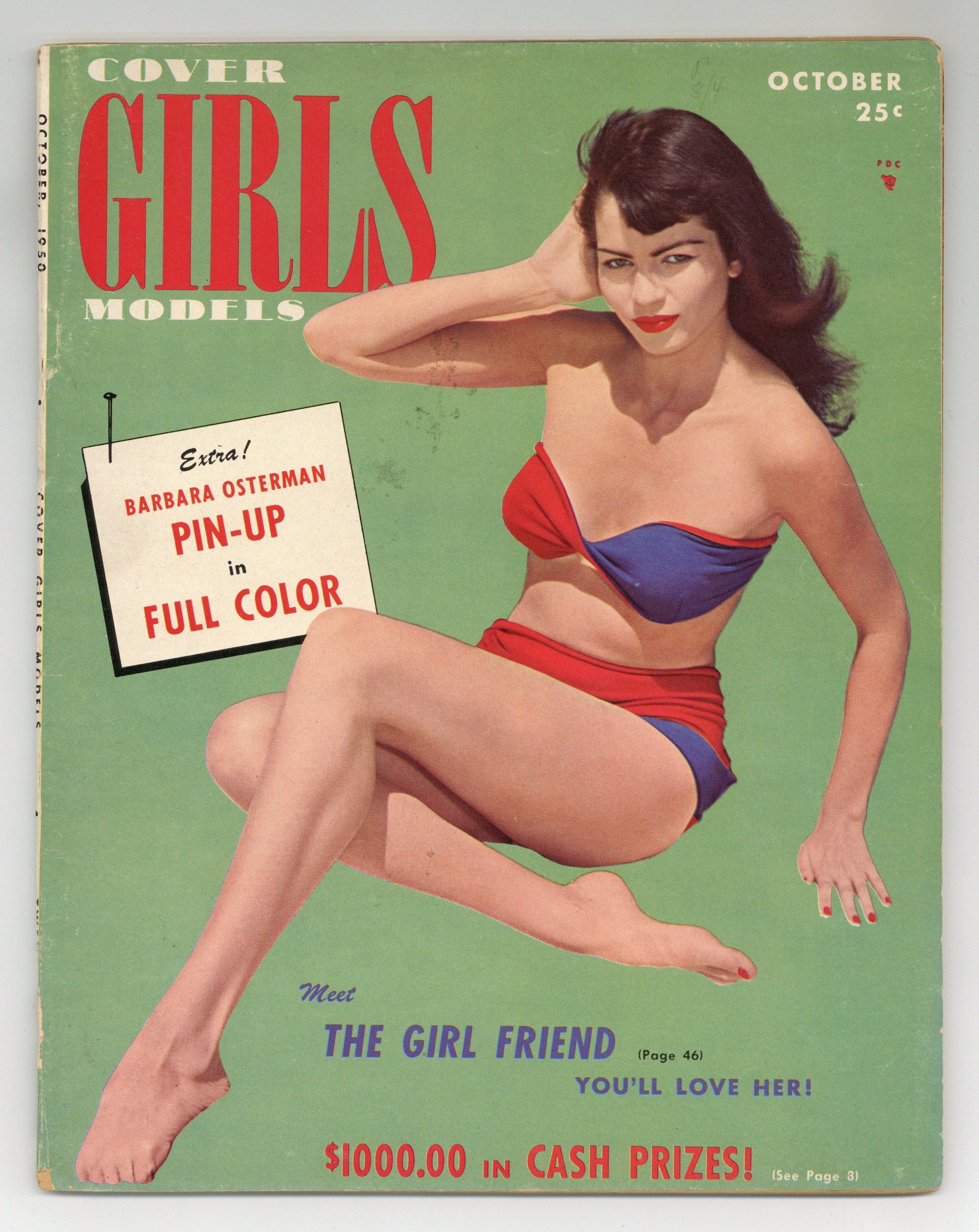 Volume 1, Issue 6 - October, 1950. Cover Girls Models Magazine was an early men's interest publication distributed between November, 1949 and December, 1955 that focused mainly on bathing suit pin-up photography, but also included the occasional Hollywood tabloid human-interest story. 8" x 10.5", 66 pages, B&W. Cover price $0.25.