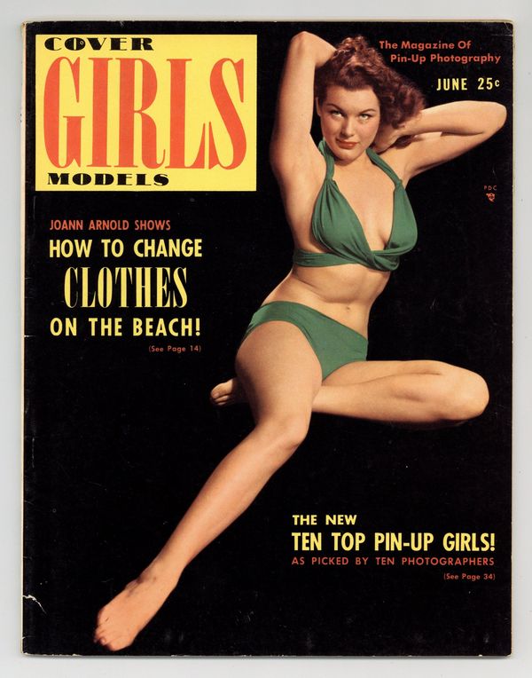 Volume 2, Issue 4 - June, 1952. Cover Girls Models Magazine was an early men's interest publication distributed between November, 1949 and December, 1955 that focused mainly on bathing suit pin-up photography, but also included the occasional Hollywood tabloid human-interest story. 8" x 10.5", 66 pages, B&W. Cover price $0.25.
