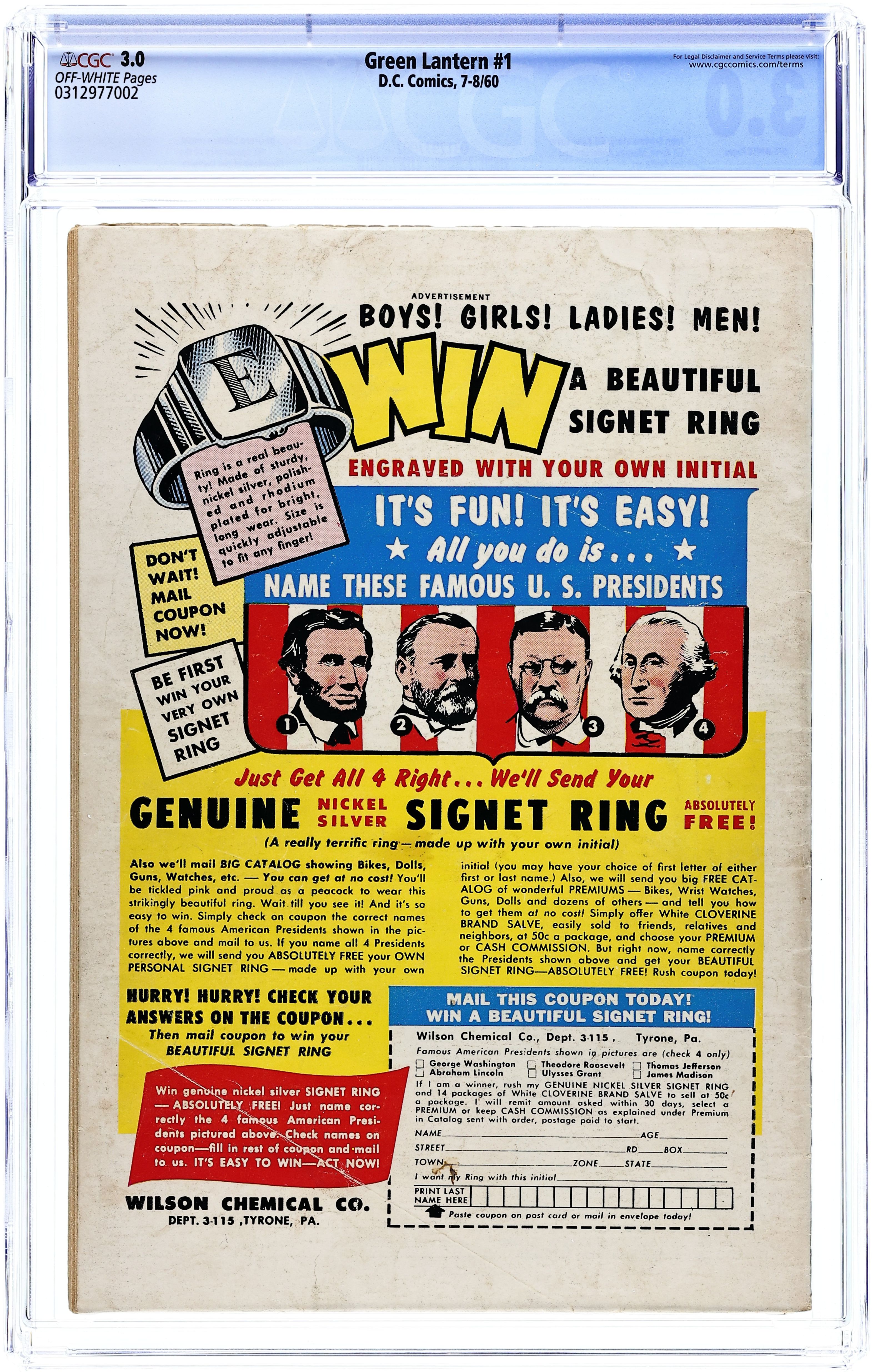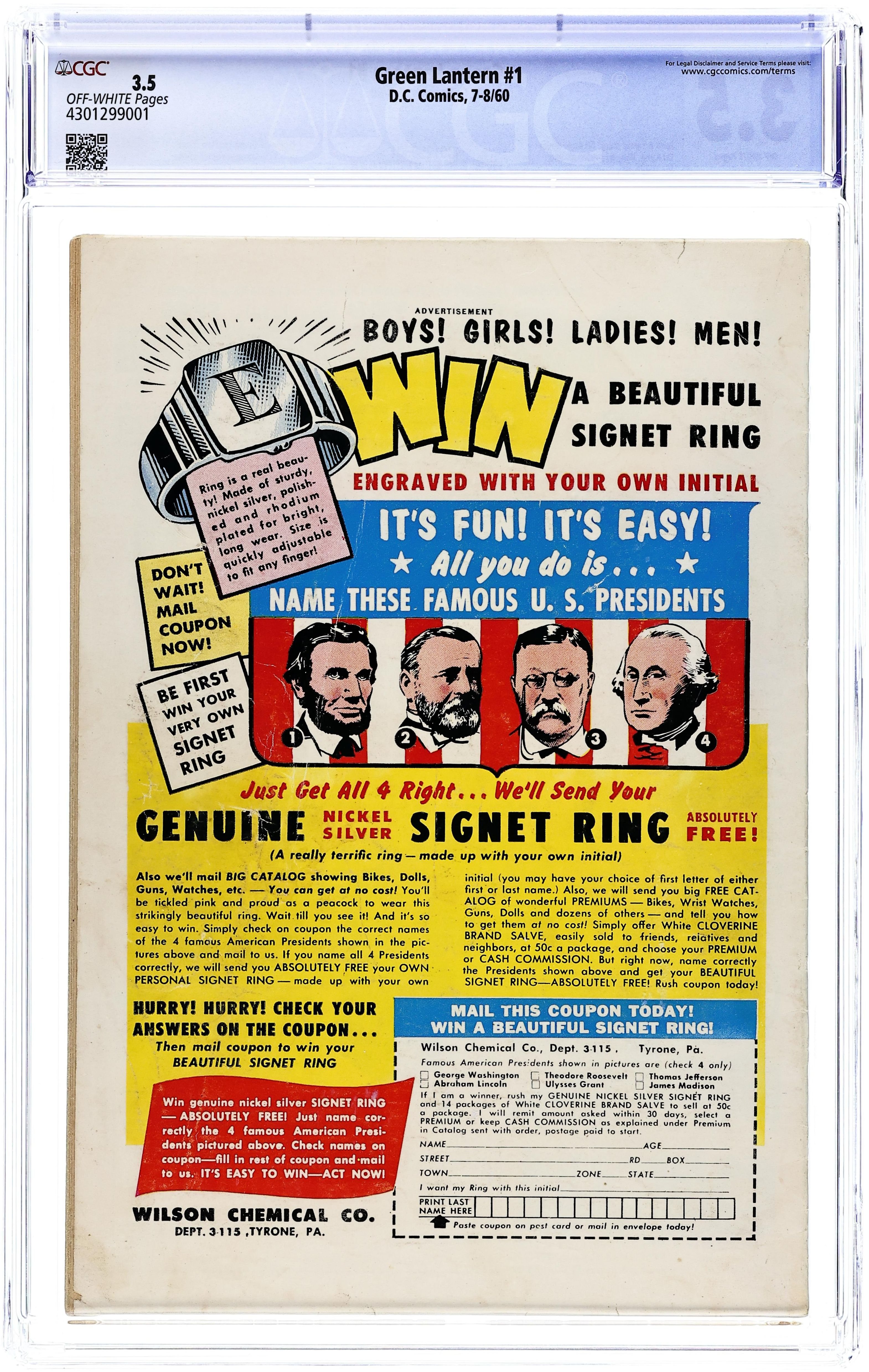 Tags: Green Lantern$365.00- Paper: Cream to off white
