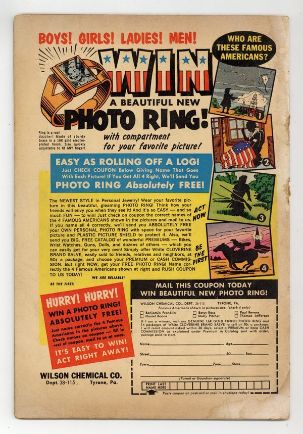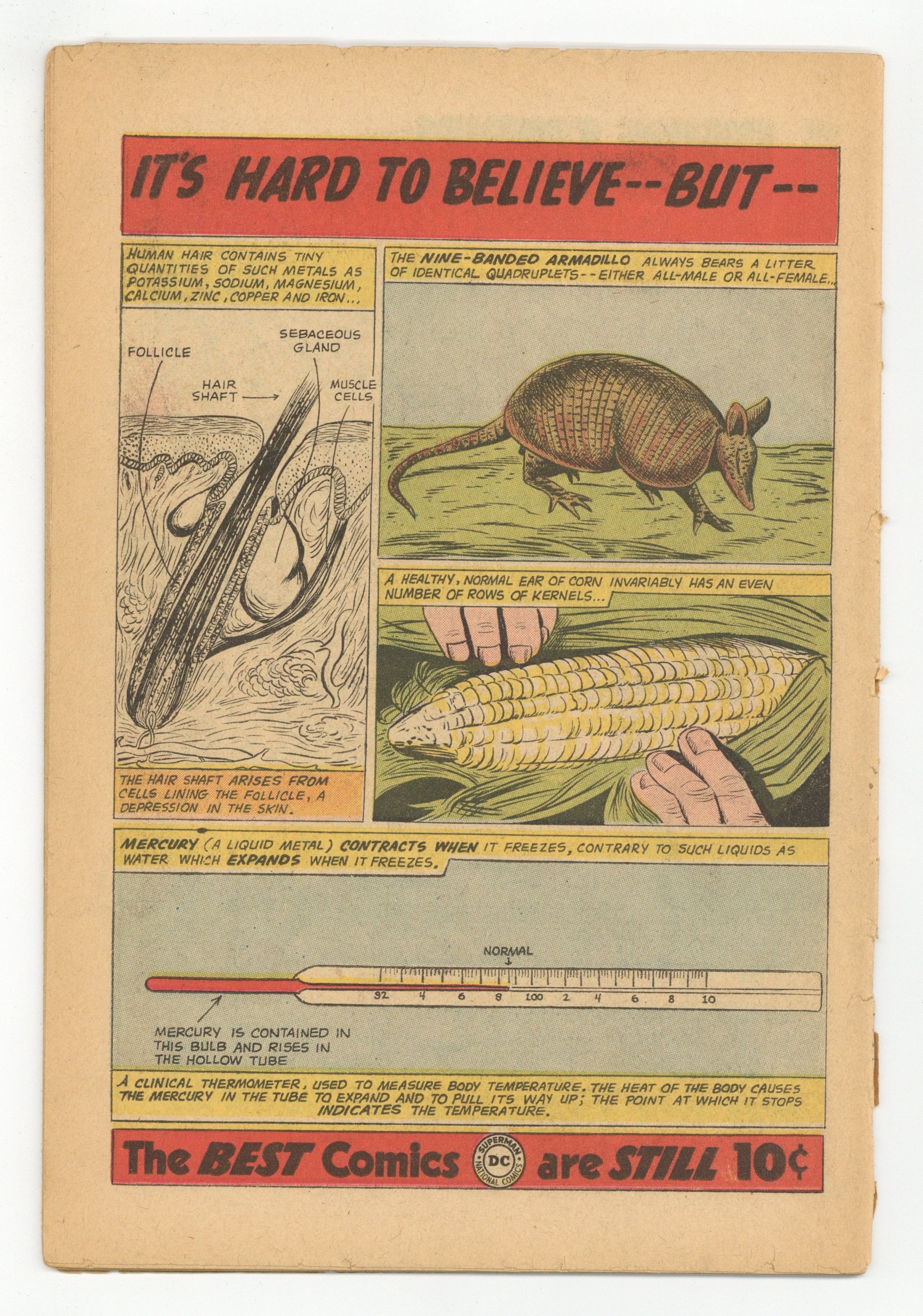 Origin and first appearance of Sinestro. Cover pencils by Gil Kane, inks by Joe Giella. The Day 100,000 People Vanished!, script by John Broome, pencils by Gil Kane, inks by Joe Giella; In an attempt to capture Green Lantern, Sinestro captures 100,000 people from the town of Valdale; The Guardians warn Green Lantern of Sinestro's plan and Green Lantern travels to Qward to rescue the citizens of Valdale. Wings of Destiny!, script by John Broome, pencils by Gil Kane, inks by Joe Giella; Green Lantern accidentally changes Pieface into a bird while Green Lantern is having a dream. Later Green Lantern has to meet Terga at the airport and stop a hijacking. 36 pgs. $0.10. Cover price $0.10.