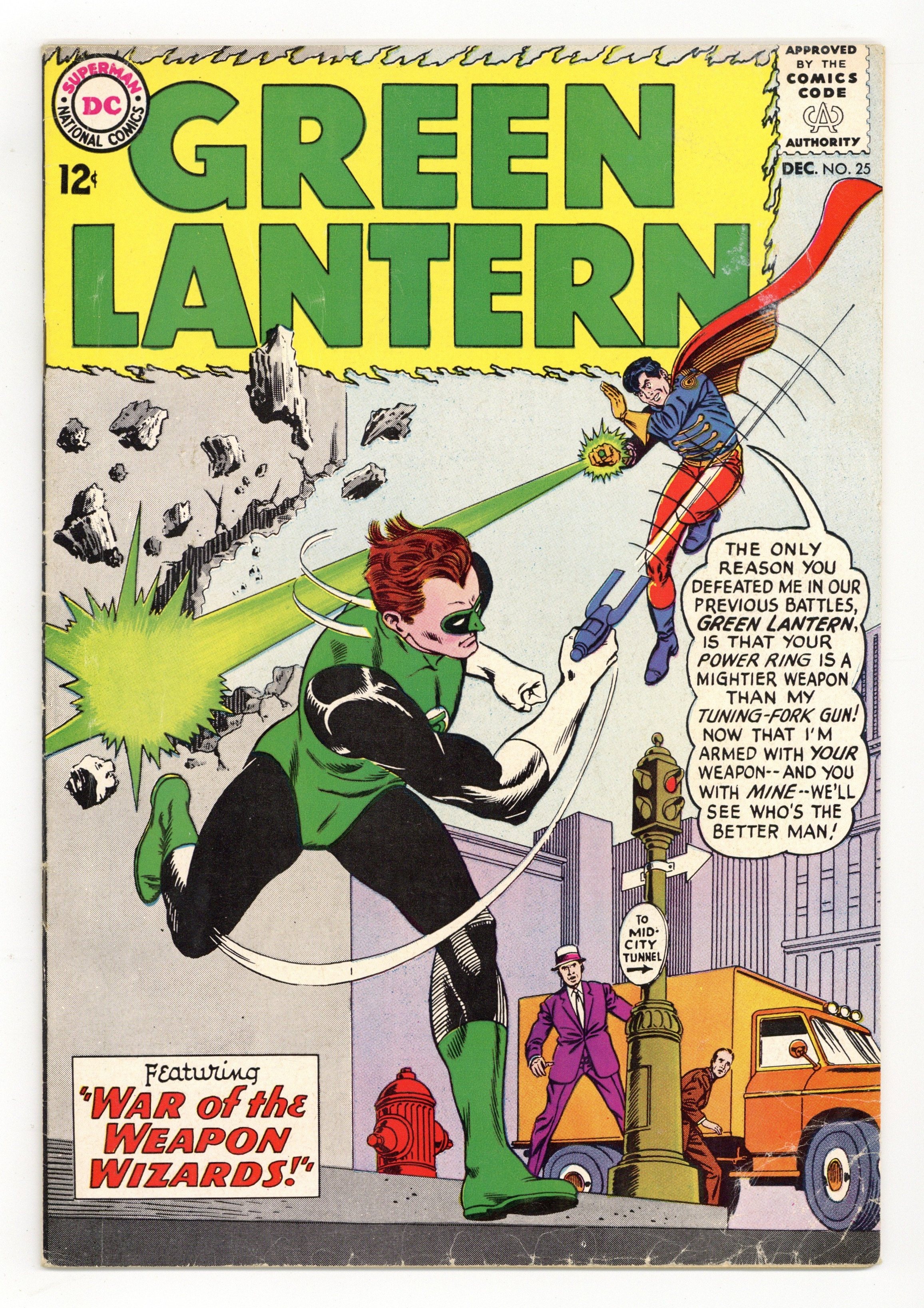 Cover pencils by Gil Kane, inks by Murphy Anderson. War of the Weapons Wizards!, script by Gardner Fox, pencils by Gil Kane, inks by Joe Giella; Green Lantern versus Sonar and Hector Hammond. It's Hard To Believe fact page, script by Julius Schwartz, pencils by Morris Waldinger, inks by Tom Nicolosi. 36 pgs. $0.12. Cover price $0.12.