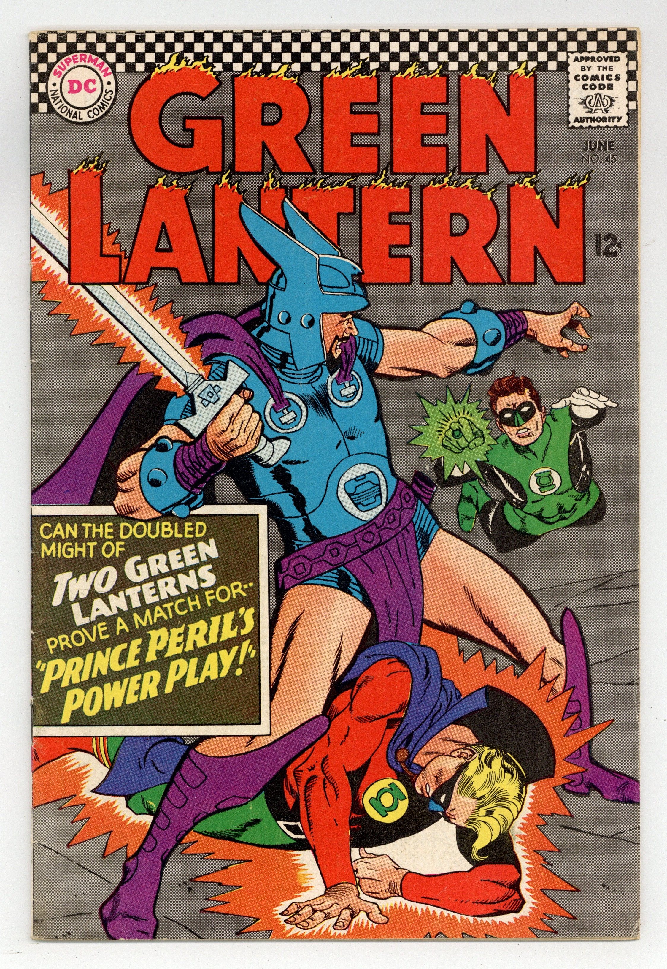 Second Silver Age appearance of the Golden Age Green Lantern. Cover art by Gil Kane. Prince Perils Power Play, script by John Broome, pencils by Gil Kane, inks by Sid Greene; Princess Ramia comes to Earth looking for a new husband so she doesn't have to marry Prince Peril. 36 pgs. $0.12. Cover price $0.12.