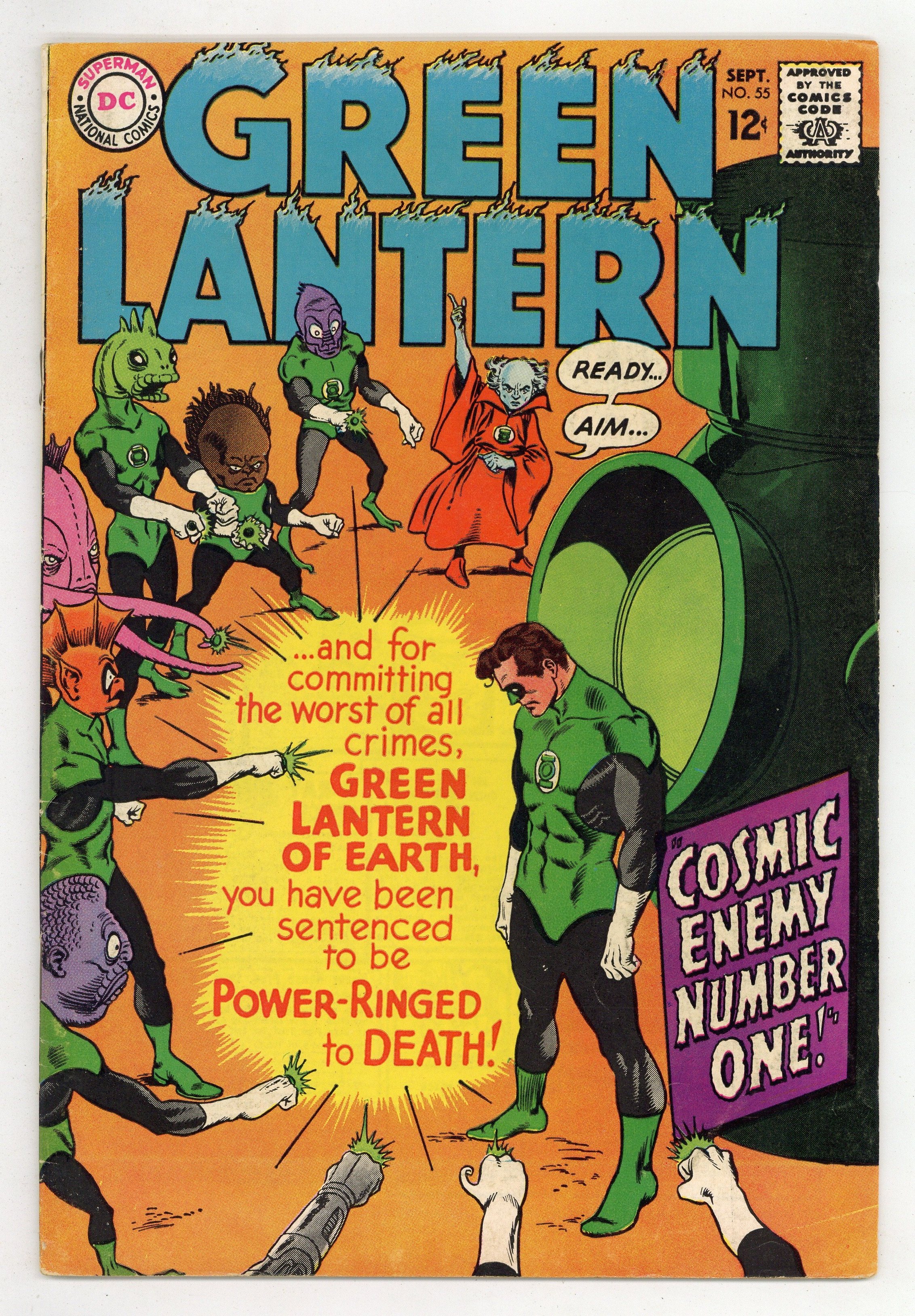 Tags: Green Lantern$16.75Cover pencils by Gil Kane, inks by Murphy Anderson. Cosmic Enemy Number One, script by John Broome, art by Gil Kane; The murder of a television actor playing Green Lantern connects to an intergalactic plot against the GL Corps masterminded by Earth criminal Al Magone, once captured by Abin Sur and imprisoned on a remote planet by the Guardians; Several Green Lanterns are killed and the rest fight for their lives against other villains freed by Magone. Cap's Hobby Hints by Henry Boltinoff. 36 pgs., full color. $0.12. Cover price $0.12.