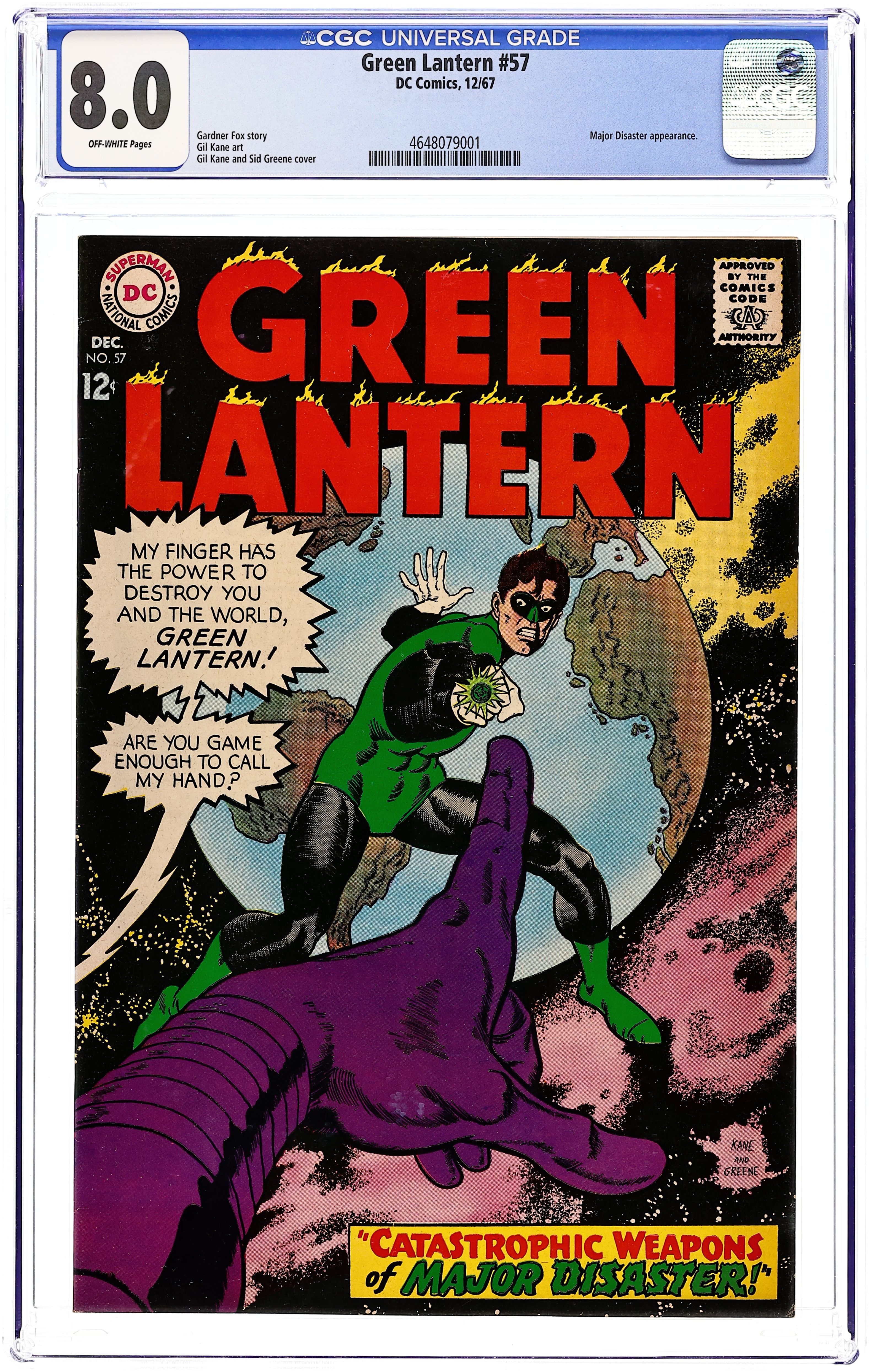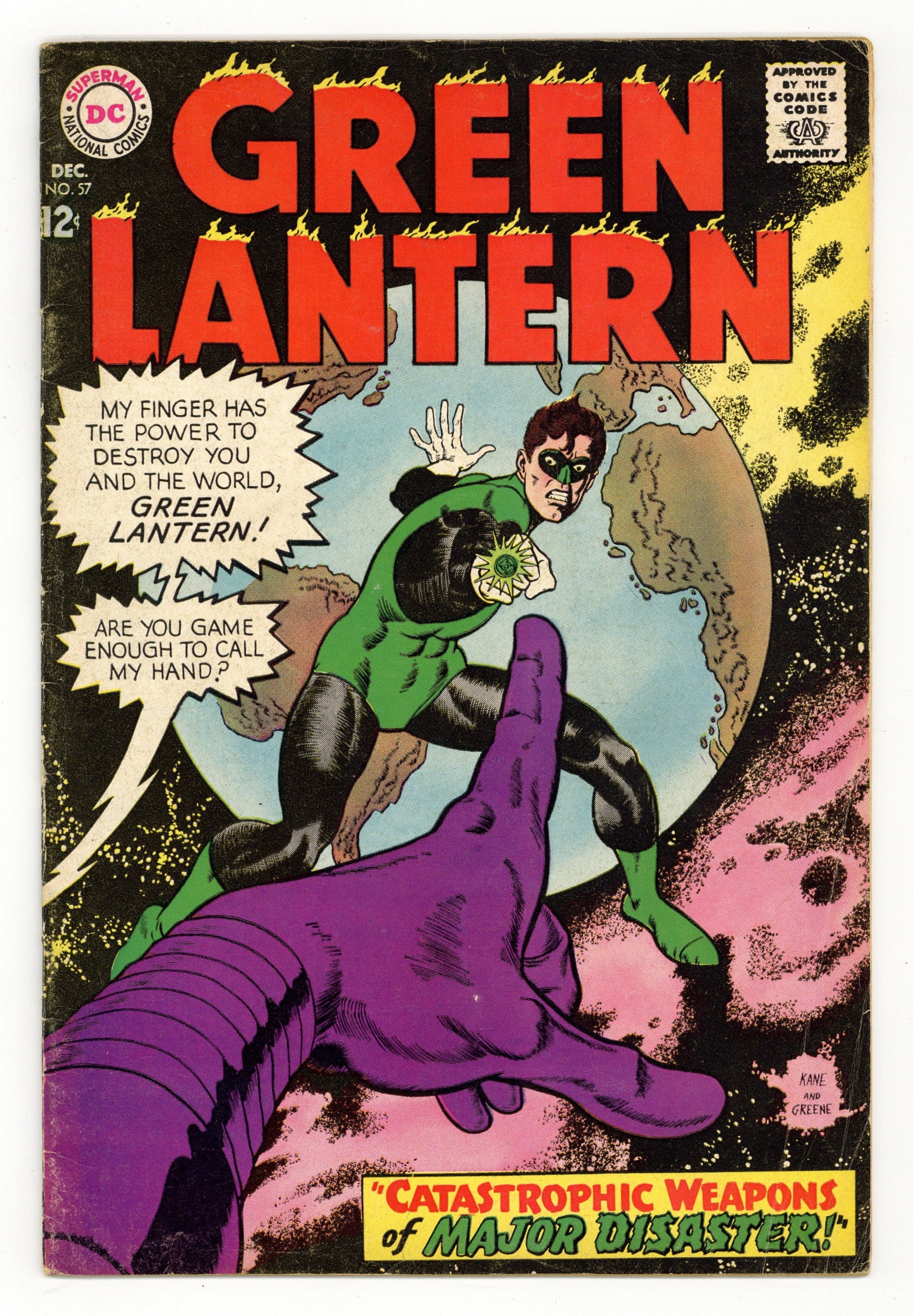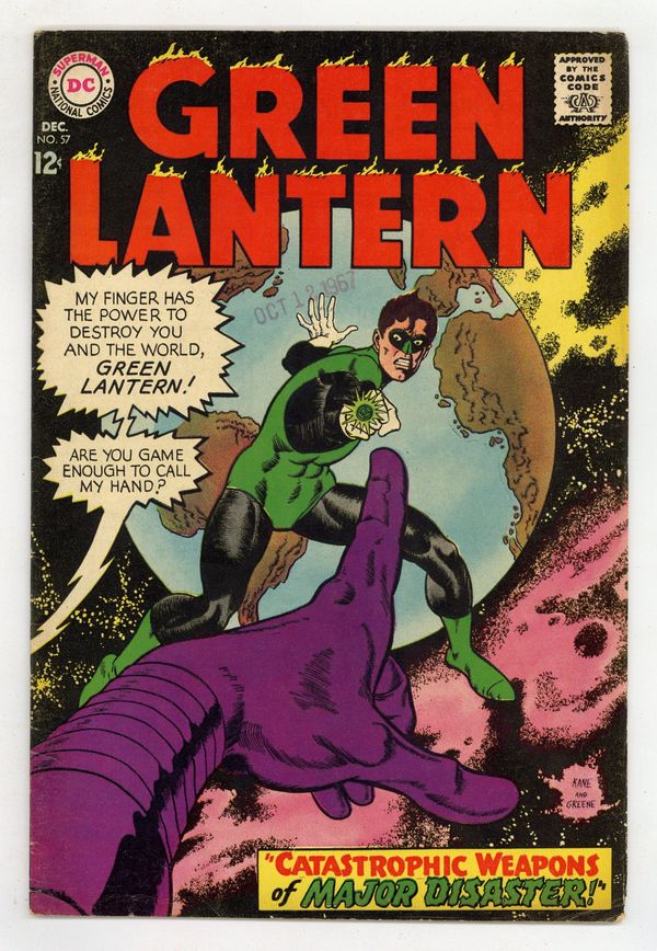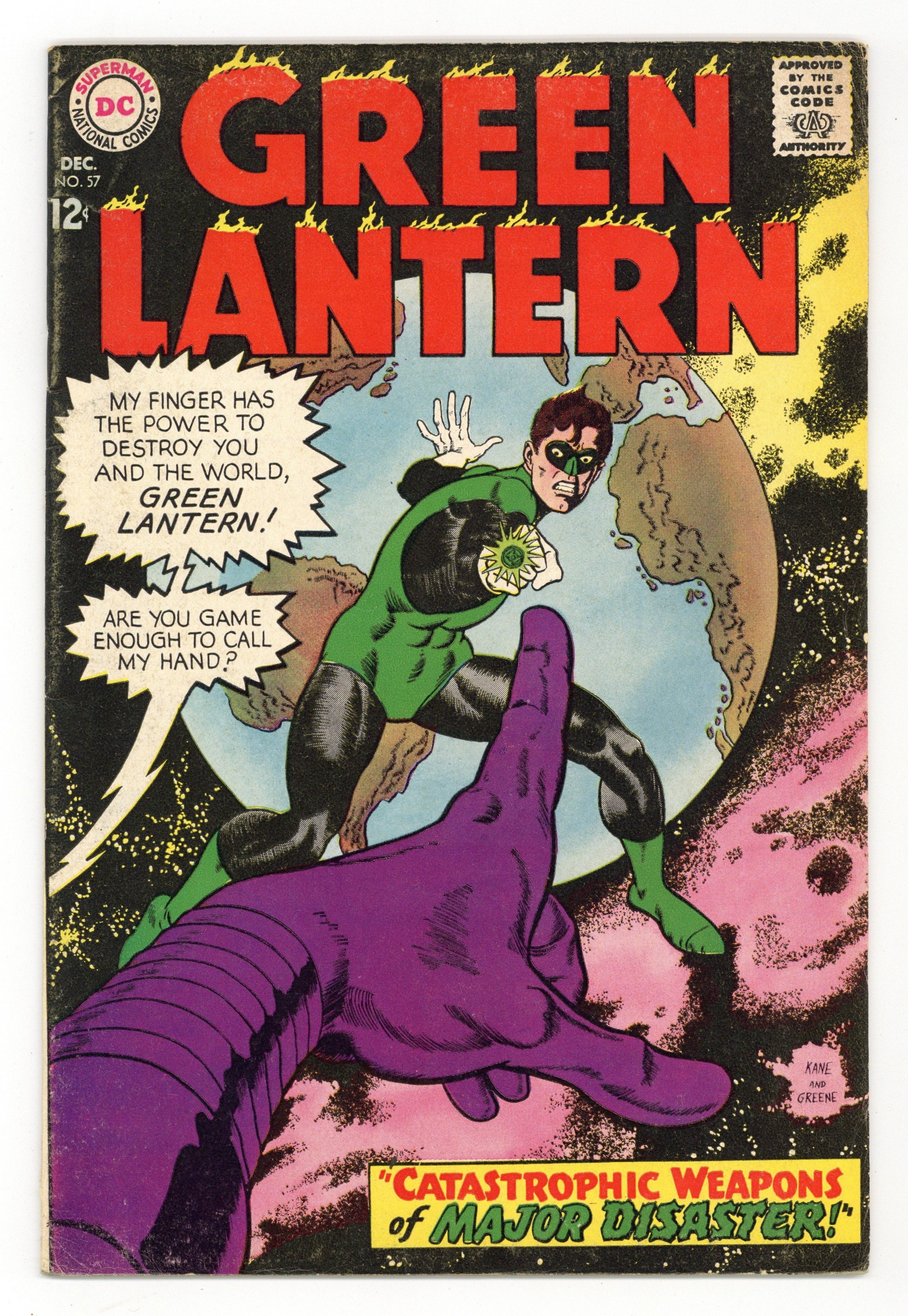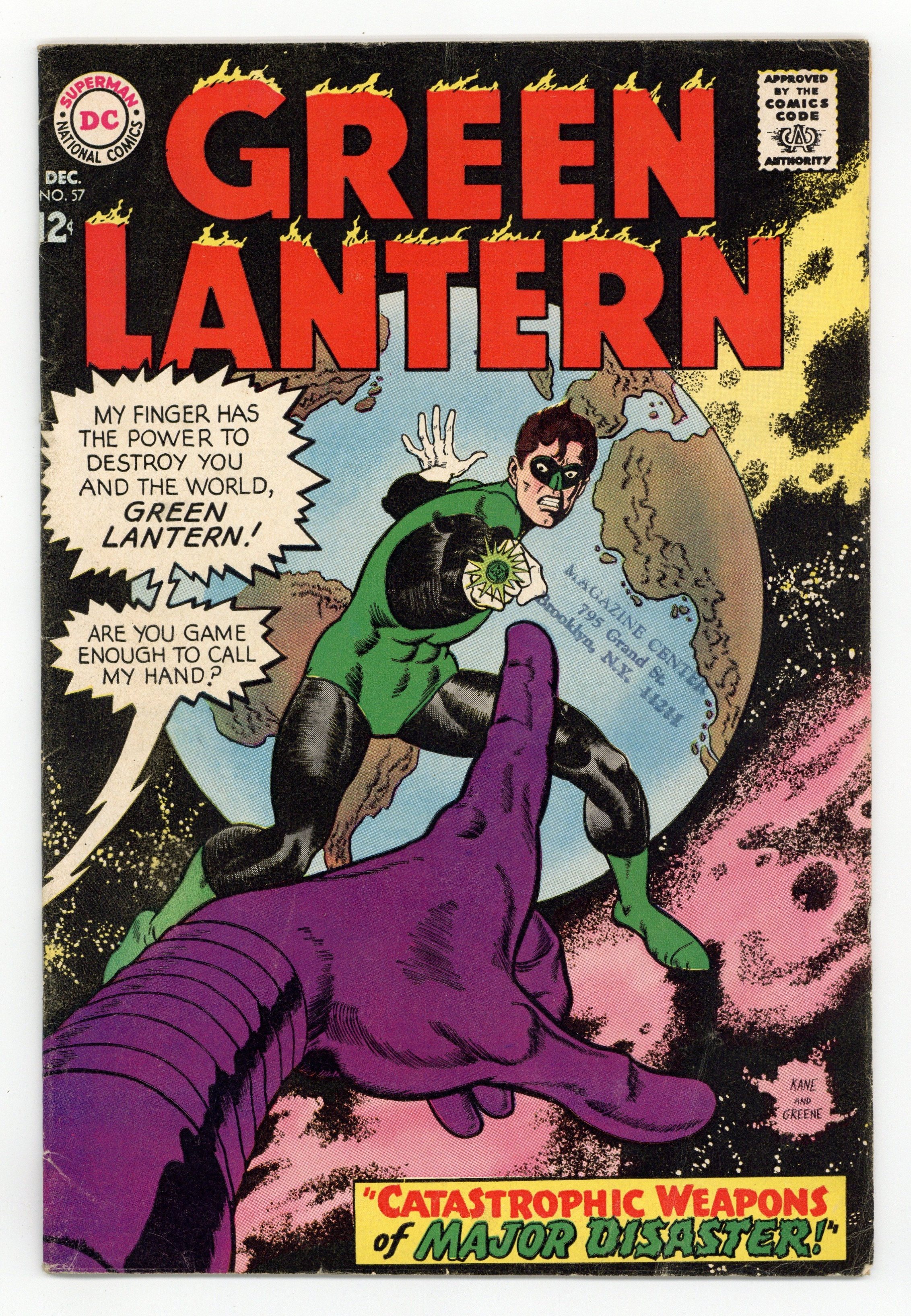 Tags: Green Lantern$16.75Cover pencils by Gil Kane, inks by Sid Greene. Catastrophic Weapons of Major Disaster!, script by Gardner Fox, art by Gil Kane; Major Disaster uses his knowledge of Green Lantern's secret identity to distract GL from his latest robbery plans. Tales of the Bizarro World ad. Adventures of Bob Hope ad. Cap's Hobby Hints by Henry Boltinoff. Deadman/The Spectre ad. Letter to the editor from writer Peter Sanderson. 36 pgs., full color. $0.12. Cover price $0.12.