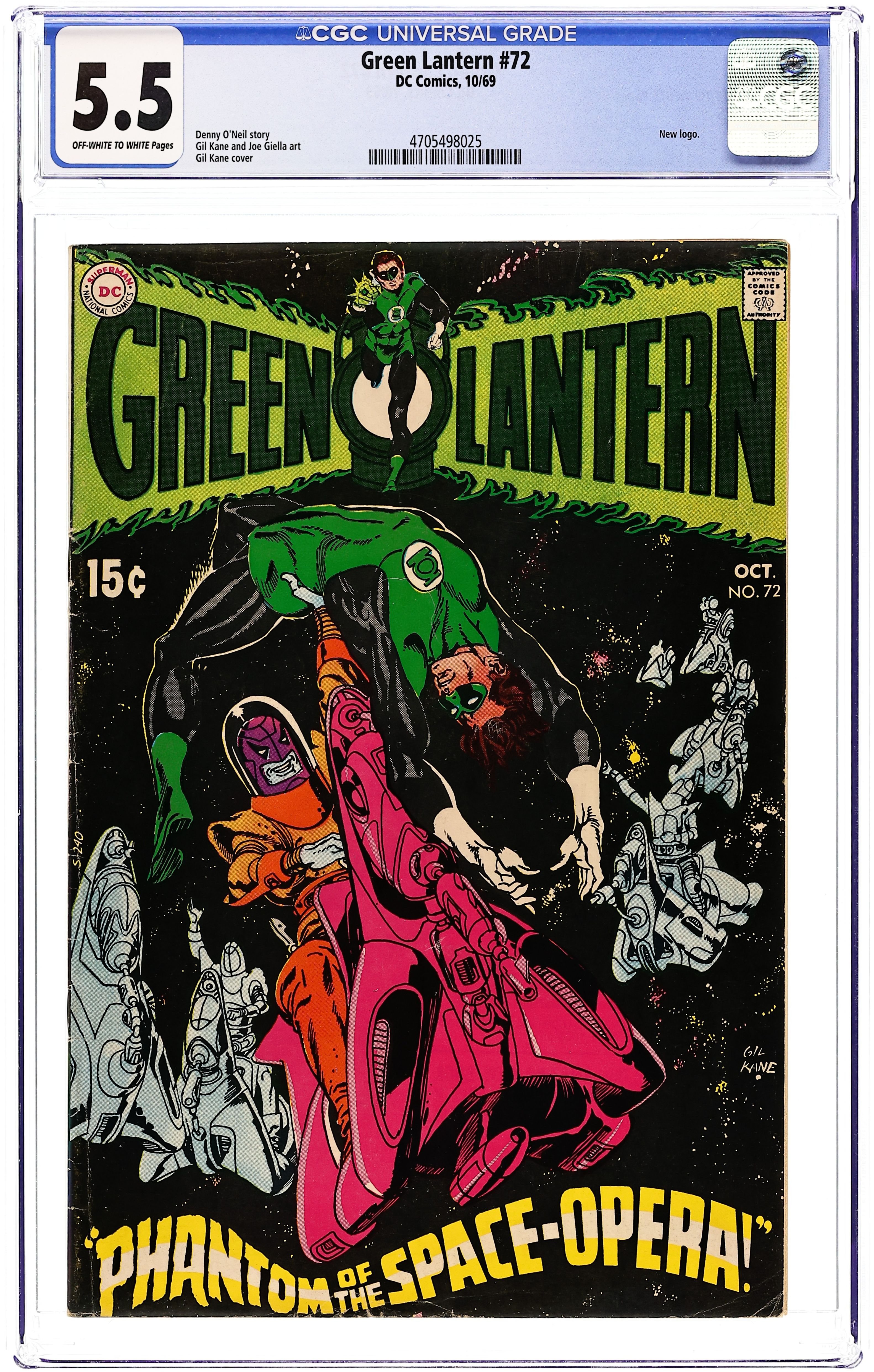 Cover by Gil Kane. Phantom of the Space-Opera!, script by Denny O'Neil, pencils by Gil Kane, inks by Joe Giella; Green Lantern is sent to the Berliotz star system, the site of an annual opera performance which is going to be disrupted by the warlike Wagnorians and their pawns, the nomadic Verdees, as a pretext for interplanetary war. 36 pgs., full color. $0.15. Cover price $0.15.