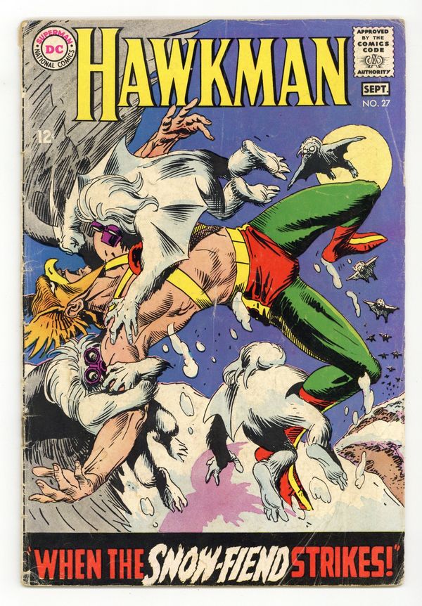 Final issue of the series. Cover art by Joe Kubert. When the Snow-Fiend Strikes!, script by Raymond Marais, pencils by Dick Dillin, inks by Chuck Cuidera; The Hawks travel to a Himalayan country menaced by a band of men pretending to be yeti, and the last of the true yeti helps them expose the fakery. House ad for Superman's Pal, Jimmy Olsen (DC, 1954 series) #113, pencils by Ross Andru, inks by Mike Esposito. 36 pgs. $0.12. Cover price $0.12.