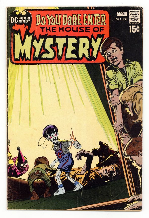 $30.00Cover art by Neal Adams. "No Strings Attached!", script by Len Wein, art by Bill Draut; A puppeteer is evicted from his house and dies without knowing that the children he entertained have not forgotten him; His puppets come to life to enact revenge on the heartless man who stole their master's home. One-page Room 13 cartoon, art by Sergio Aragonés. One-page Cain's Game Room, art by Sergio Aragonés. Statement of Ownership, Management, and Circulation: Average number of copies sold during preceding 12 months (total paid circulation): 180,642; Actual number sold for issue nearest filing date (total paid circulation): 176,497. "The Hanging Tree!", script by Jack Oleck, art by Tony deZuniga; A witch's curse destroys a man hundreds of years later. "Night Prowler!", script by Len Wein, art by Bernie Wrightson; On Christmas Eve, a man and his wife are awakened by the sounds of a prowler in the house. 36 Pages, Full Color. Cover price $0.15.