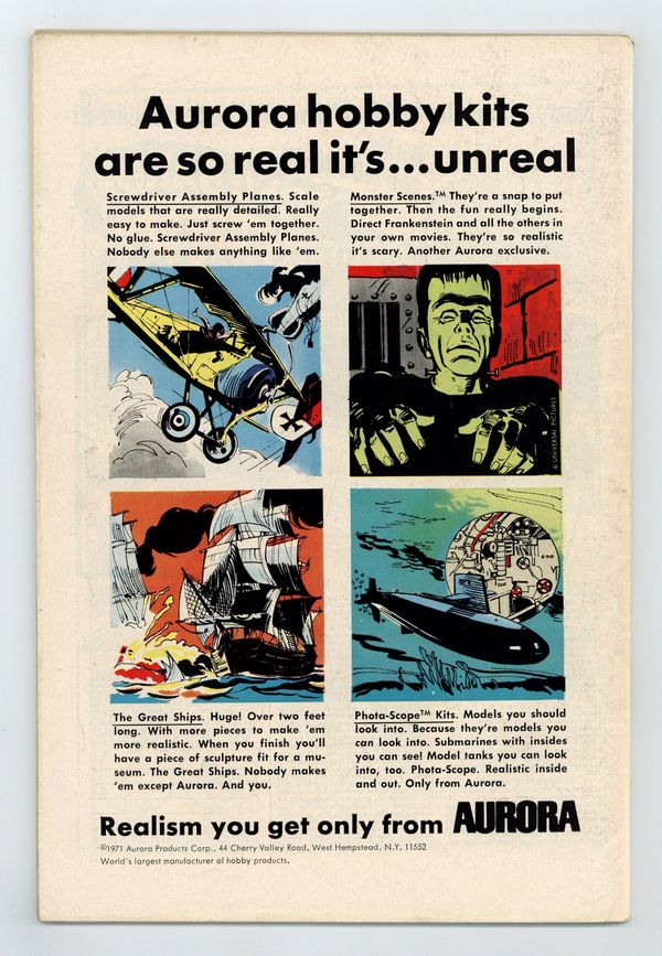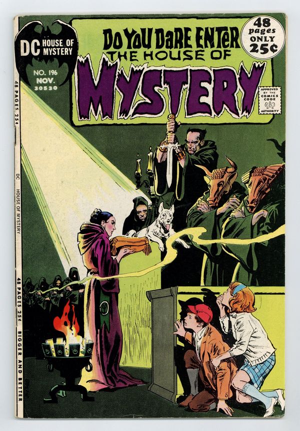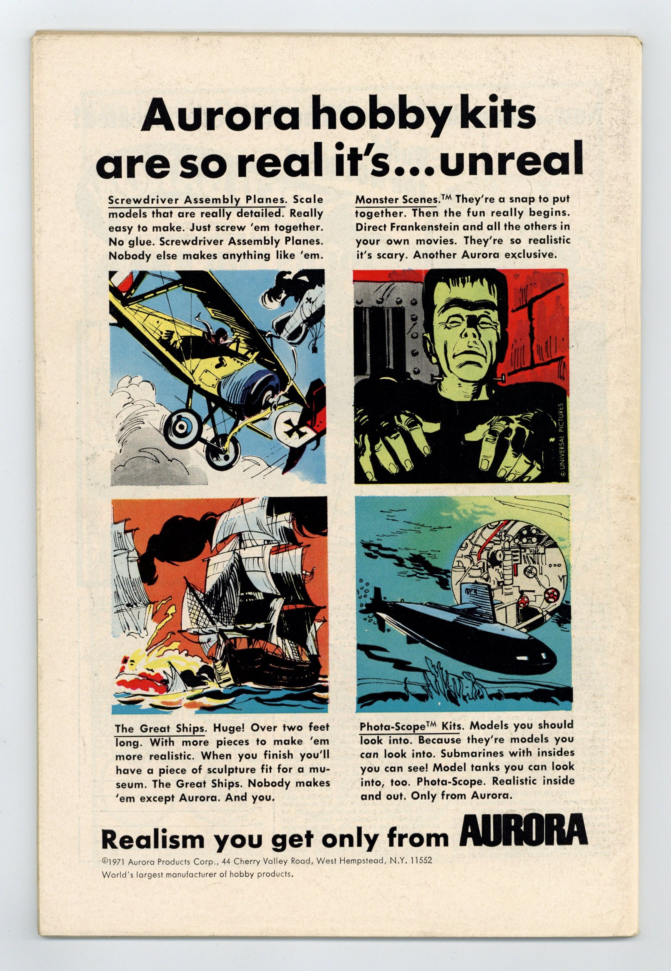 $35.50Cover art by Tony deZuniga. "A Girl and Her Dog," script by Gerry Conway, art by Gray Morrow; During WWII, two orphans are chased through bomb-ravaged London by Satan worshipers. One page of Cain's Game Room cartoons, art by Sergio Aragones. "The Alien Within Me," art by Alex Toth; An alien sends his image to Earth to stop a bomb sent here by his race. "Child of the Dead," script by Jack Oleck, art by Wayne Howard; A woman is buried but when grave robbers dig her grave up they find her alive. One page of Cain's Room cartoons, art by Lore Shoberg. "Dark Journey," art by Nick Cardy; A man who takes a fortune that was meant to build a hospital in Africa is cursed by the village witch doctor. "My Heart Becomes So Icy Cold" A Witch's Garden of Curses text story by Len Wein, art by Tony DeZuniga. "The Little People," script by Jack Oleck, pencils by Gil Kane, inks by Frank Giacoia; Michael O'Bannion makes a bargain with the little people to trade his unwanted baby girl for a baby boy. 52 Pages, Full Color. Cover price $0.25.