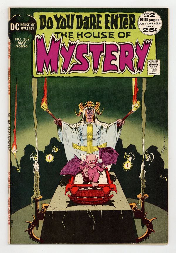 Cover art by Michael W. Kaluta. "The Shearing of a Soul!", script by Gerry Conway, pencils by Mike Sekowsky, inks by Frank Giacoia; When her husband dies, a woman makes a pact with the devil to place his mind inside their newborn son. "A Deal with a Sorcerer!", script by John Albano, art by Nestor Redondo; Franklin Owen sells his soul to become a sorcerer. "Stay Away from Me--You Might Die," art by Gene Colan; Dr. Bertrand finds a bomb from outer space but can't let go of it for fear of it exploding. 1.5-page Trick or Treat story with Adolph Hitler, art by Sid Greene. "The Poster Plague," script by Steve Skeates, art by Sergio Aragonés; Someone has been putting up outdated posters on a college campus. "The Phantom on Wheels!", art by John Prentice; Ted Perry, a debunker of supernatural claims, drives a car that was cursed by Murdock the Magician; reprinted from House of Mystery #58. 52 Pages, Full Color. Cover price $0.25.