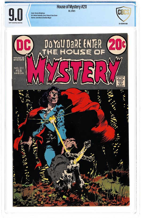 Cover art by Bernie Wrightson. "Deliver Us from Evil," script by Jack Oleck, art by Nestor Redondo; The peasants ask Dravos to kill the werewolf that is terrorizing their valley; Little do they know that they are exchanging a werewolf for something more sinister. Cain's Game Room cartoon page, art by Sergio Aragonés. "Money To Burn," script by Jack Oleck, art by Dan Green; John Avery thinks he can buy his way into heaven. "Unholy Change!", script by Sheldon Mayer, art by Gerry Talaoc; George Farson discovers that a magic mirror will let him slip into alternate versions of history. 36 Pages, Full Color. Cover price $0.20.