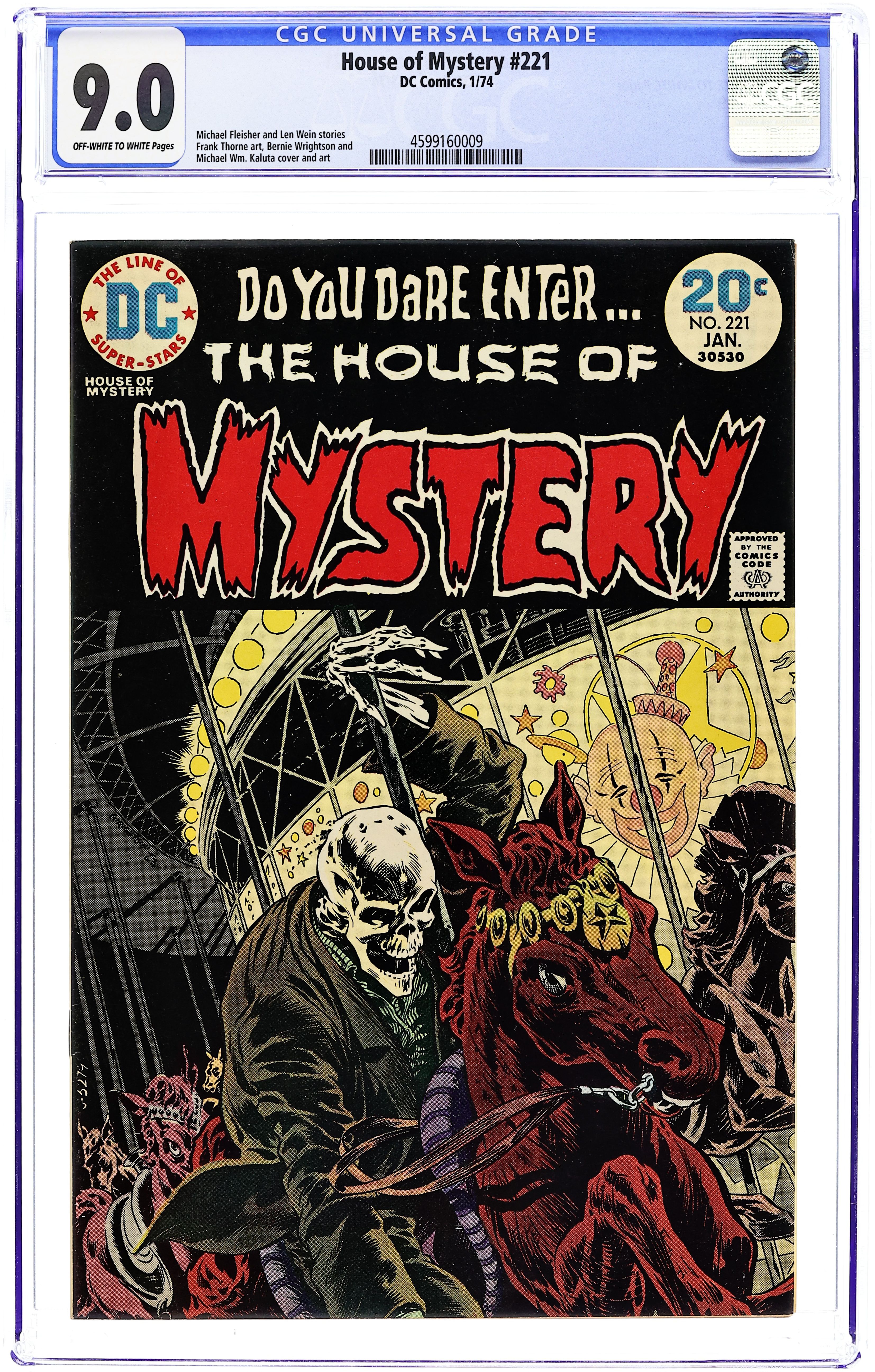 Cover art by Bernie Wrightson. "Pingo!", script by Michael Fleisher and Russell Carley, art by Frank Thorne; After Pingo the clown's wife realizes that her husband is a serial killer, he arranges to kill her too during their highwire act and make it look like an accident, but she gets her revenge from beyond the grave. Rudolph the Red-Nosed Reindeer comic book ad. Cain's Game Room cartoon page, art by Sergio Aragonés. "He Who Laughs Last," script by Len Wein, pencils by Berni Wrightson, inks by Mike Kaluta; A plot to steal a young girl's inheritance is foiled by a ghostly clown. Letter from comics writer and editor Bob Greenberger. 36 Pages, Full Color. Cover price $0.20.