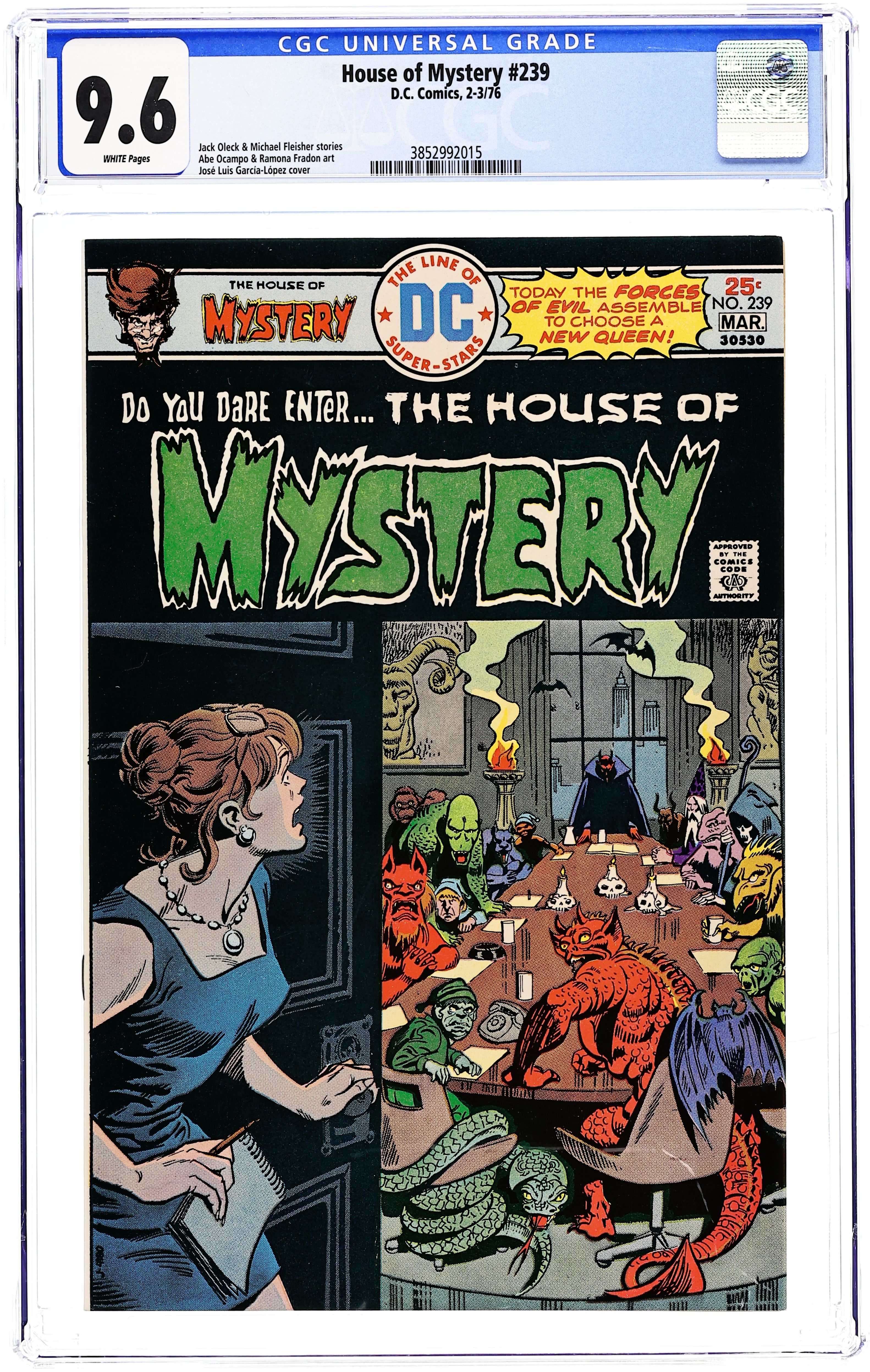 Cover by Jose Luis Garcia-Lopez. Today the forces of evil assemble to choose a new queen! Featuring: 7 page story "Day of the Witch" written by Jack Oleck and drawn by Abe Ocampo. Plus: 10 page story "Dog Food" written by Russell Carley (script continuity) & Michael Fleisher and drawn by Ramona Fradon. Also: 1 page Cain's Gargoyles filler drawn by Sergio Aragones. 36 Pages, Full Color. Cover price $0.25.