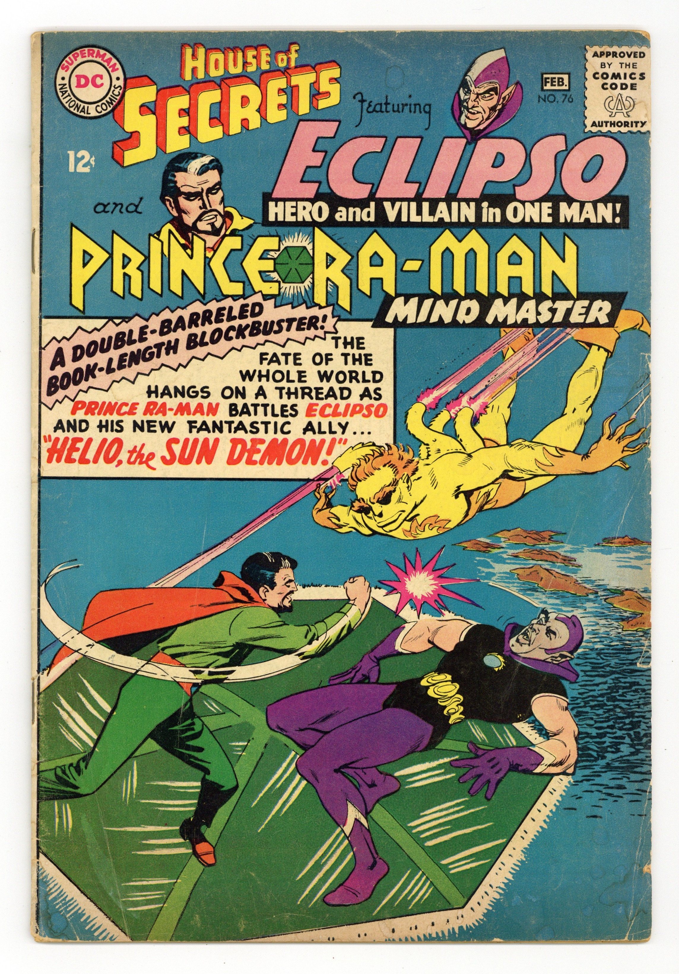 Cover art by Jack Sparling. "The Magic Card!" public service announcement, script by Jack Schiff, art by Bernard Baily; A group of kids discover the library. "Helio, the Sun Demon!" Part 1, script by Bob Haney, art by Jack Sparling; Eclipso creates the sun-being Helio and they steal a space platform from the military for their plan to rule the world; Bruce Gordon manages to return Eclipso to his body, but Helio is still on the loose. Superman ad. Dial H for Hero ad. World of the Weird text article about The Magic of Solomon. "Helio, the Sun Demon!" Part 2, script by Bob Haney, art by Bernard Baily; Helio changes Bruce Gordon back into Eclipso to continue their plot to rule the world; Prince Ra-Man, with the help of Mona and Professor Bennet manage to destroy Helio and return Eclipso to Bruce Gordon once again. The Spectre ad. 36 Pages, Full Color. Cover price $0.12.