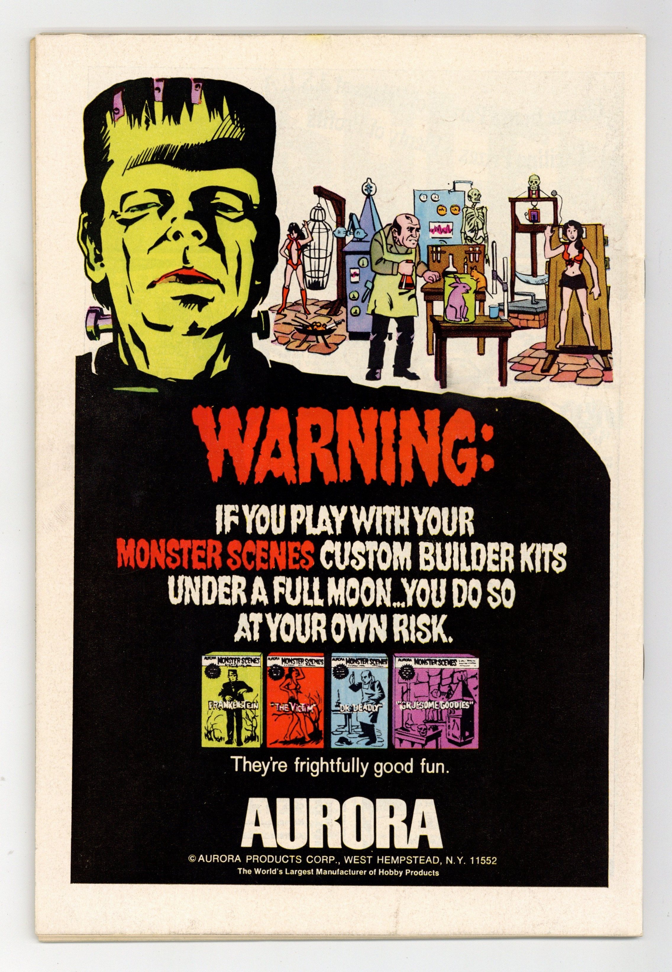 Cover art by Bernie Wrightson. "The Man with My Face," art by Jack Sparling; A gambler agrees to switch bodies with a mysterious stranger in exchange for a lucky silver dollar which allows him to never lose a bet. "Hyde--and Go Seek!", script by Len Wein, art by Tony DeZuniga; A henpecked police officer is shocked to find out his best friend was searching for a cure for drug addiction and developed a serum that transformed him into a strangler that choose his victims among girls who reminded him of his wife who left him. "The Day Nobody Died," art by George Roussos; A man is certain no one will die today because he is Death and it's his day off. "Track of the Invisible Beast," art by Alex Toth. Abel's Fables cartoon page by Sergio Aragones. "A Bottle of Incense.. A Whiff of the Past!", script by Gerry Conway, pencils by Alan Weiss, inks by Bernie Wrightson and Alan Weiss; An old woman who lost a man she fancied in an auto accident fifty years ago uses an occult ritual to return him to her, but he returns as a hungry zombie who devours her. 52 Pages, Full Color. Cover price $0.25.