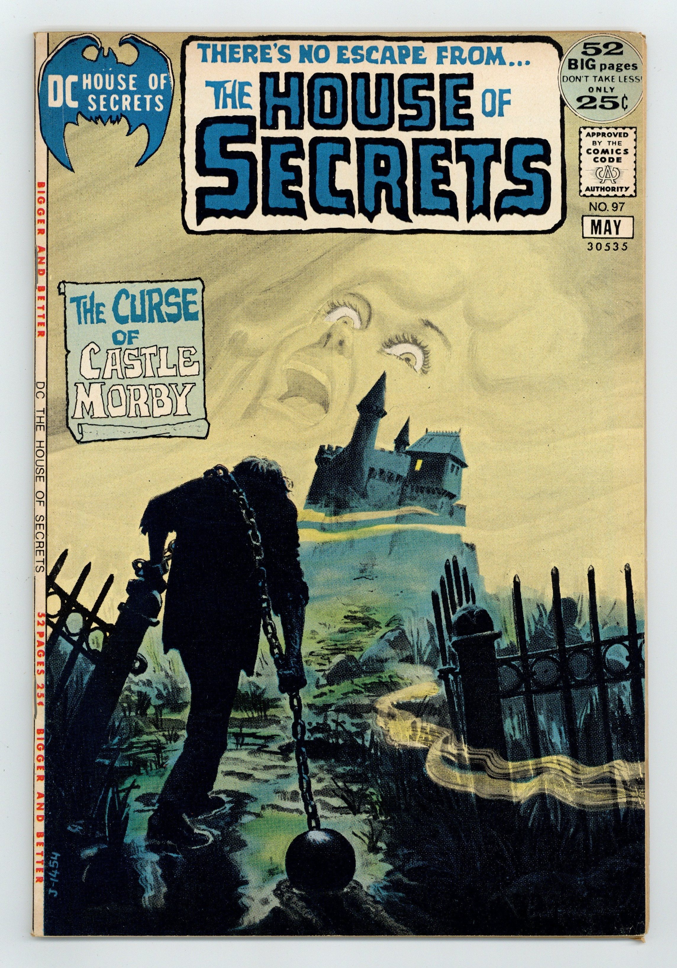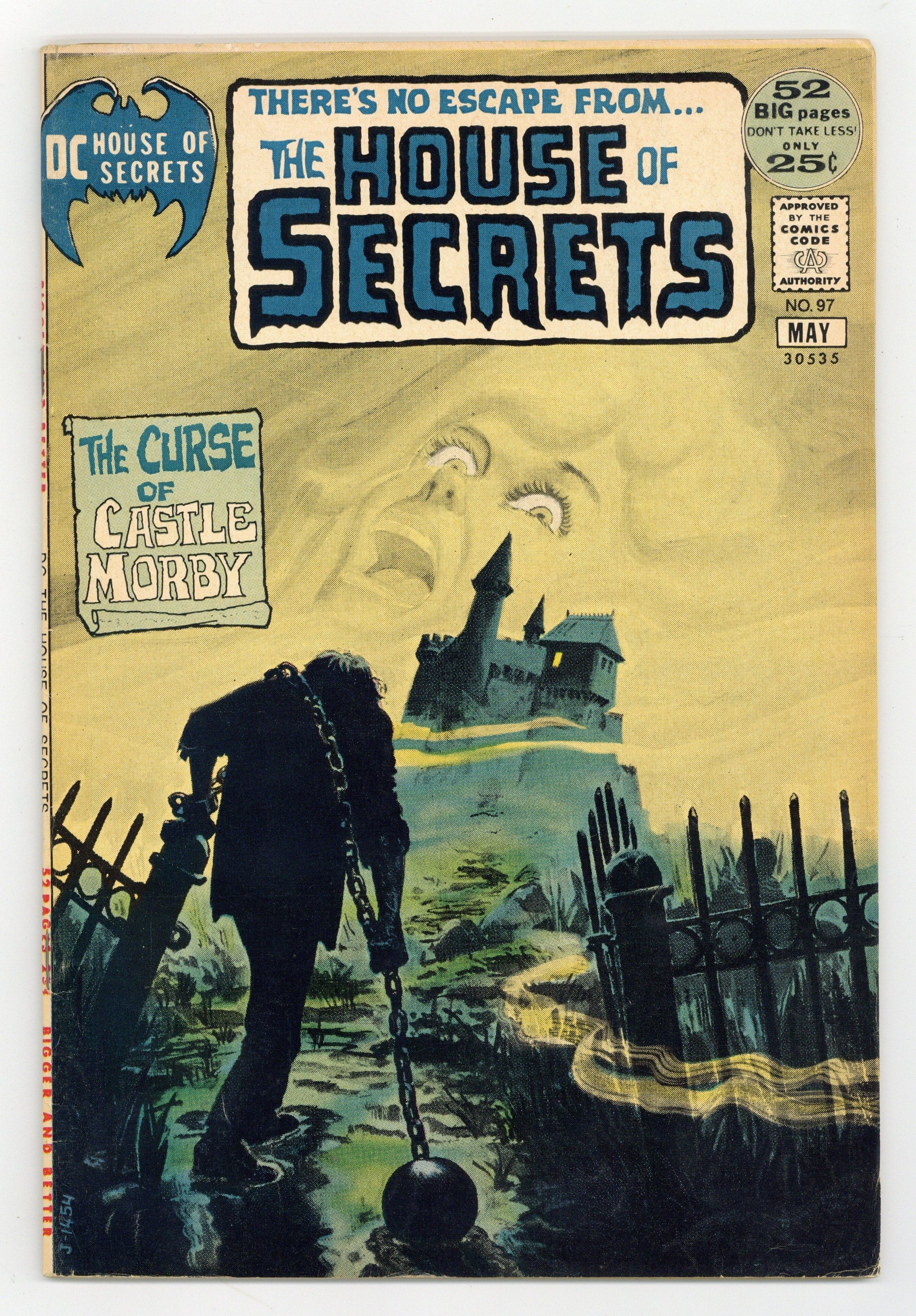 Painted cover by Jack Sparling. "The Curse of Morby Castle," art by Jack Sparling; Lance Cauldan plans to scare his new wife to death, but his aide-de-camp has her own plans. "Divide and Murder," script and Steve Skeates, art by Jim Aparo; John isn't worried about being exposed for taking kickbacks because he can separate his spirit from his body and murder his accuser; But he doesn't count on his victim entering his body and filing a full confession the next time he vacates his form. Abel's Fables cartoon page by Sergio Aragonés. "The Tomb of Ramfis" hosted by Abel, art by John Prentice. 2-page The Day After Doomsday story, script by Len Wein, art by Jack Sparling; Adam and Gertrude find a flower, then a wall falls and crushes them. "Dead Man's Diary," art by Ralph Mayo; Conrad Crane enters J. B. Dales' employ as food-taster, but Crane intends that Dales die not from poisoning, but from starvation, as Crane's father did. "Domain of the Damned!", art by Jose Delbo; Dan Walker washes ashore a tropical island filled with people he thinks look like freaks; He successfully escapes, but not without a significant change to his own appearance. 52 Pages, Full Color. Cover price $0.25.