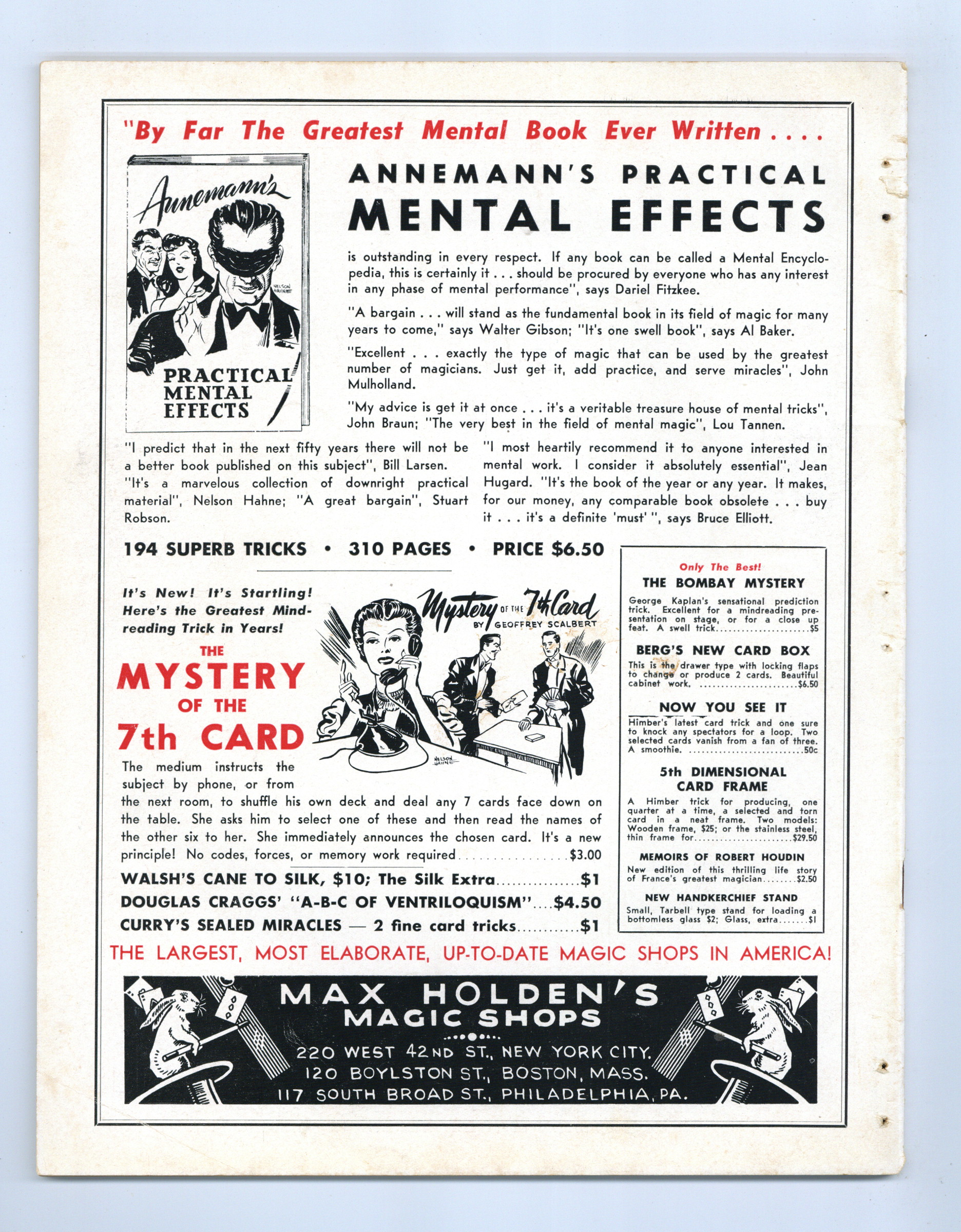 Vol. 1, No. 2 - March , 1945. Magazine for magicians. 8.5" x 11.75", 64 pages, B&W. Cover price $0.35.
