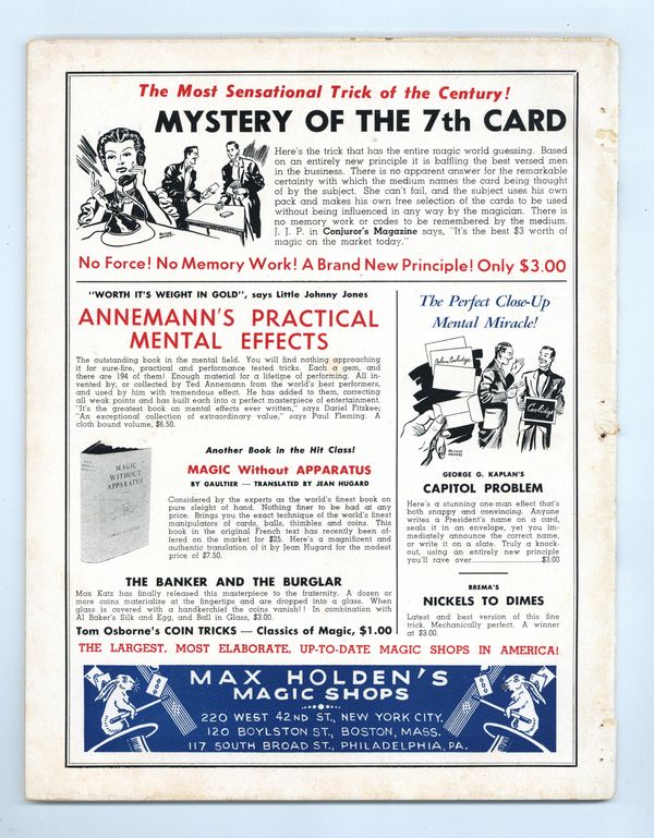 Vol. 1, No. 4 - May , 1945. Magazine for magicians. 8.5" x 11.75", 56 pages, B&W. Cover price $0.50.