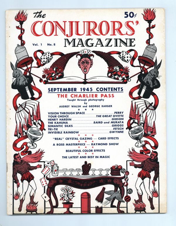 Vol. 1, No. 8 - September , 1945. Magazine for magicians. 8.5" x 11.75", 56 pages, B&W. Cover price $0.50.