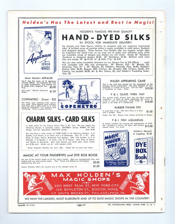 Vol. 3, No. 6 - August , 1947. Magazine for magicians. 8.5" x 11.75", 40 pages, B&W. Cover price $0.50.