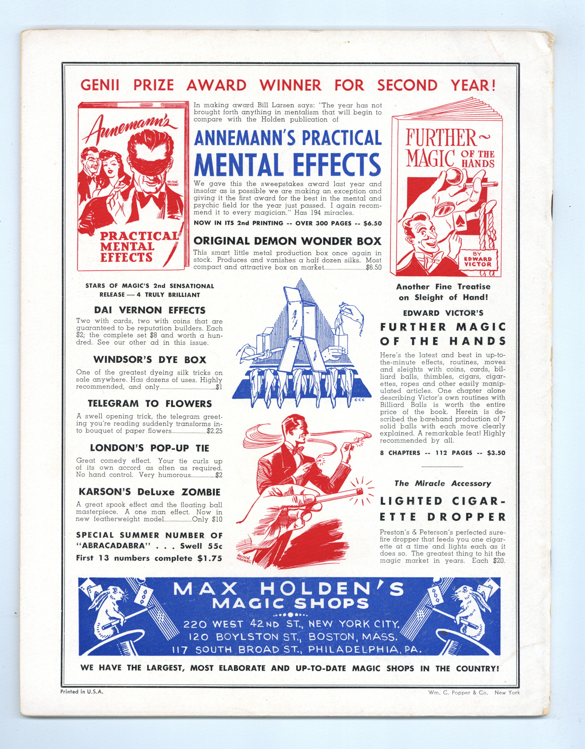 Published Oct 1948 by Conjurors' Press.$3.00- Spine split 20%. Water damage: Moderate. Staple rust: Moderate.