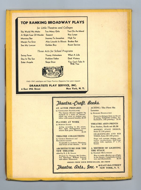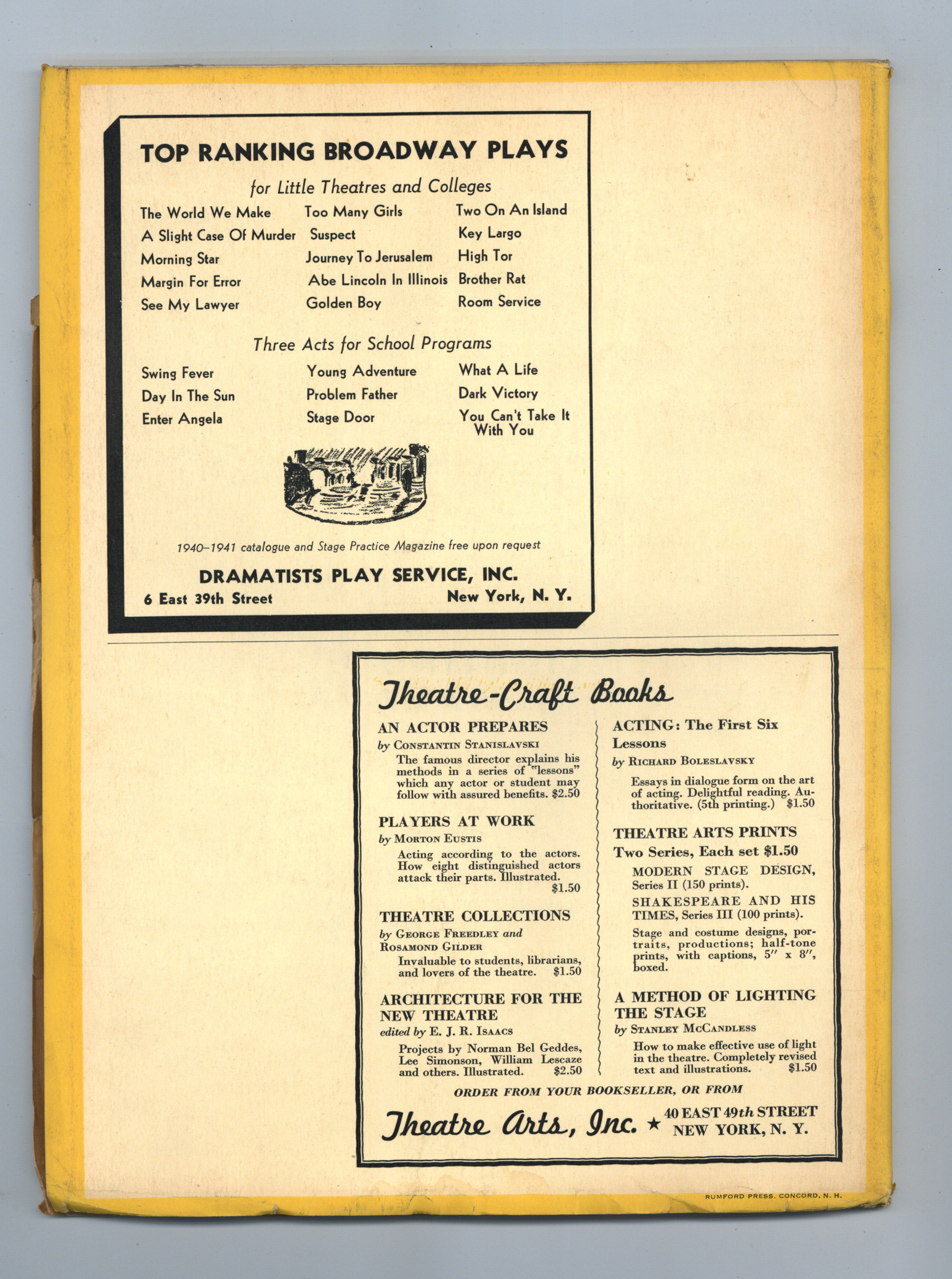 Published Mar 1941 by Theatre Arts, Inc..$12.25- Staple rust: Slight.