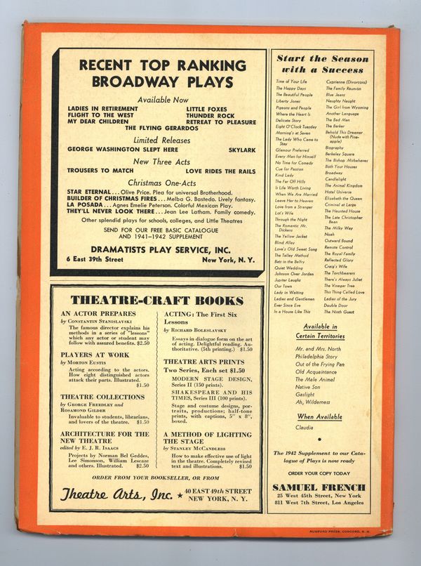 Published Oct 1941 by Theatre Arts, Inc..$2.65- Water damage: Moderate.