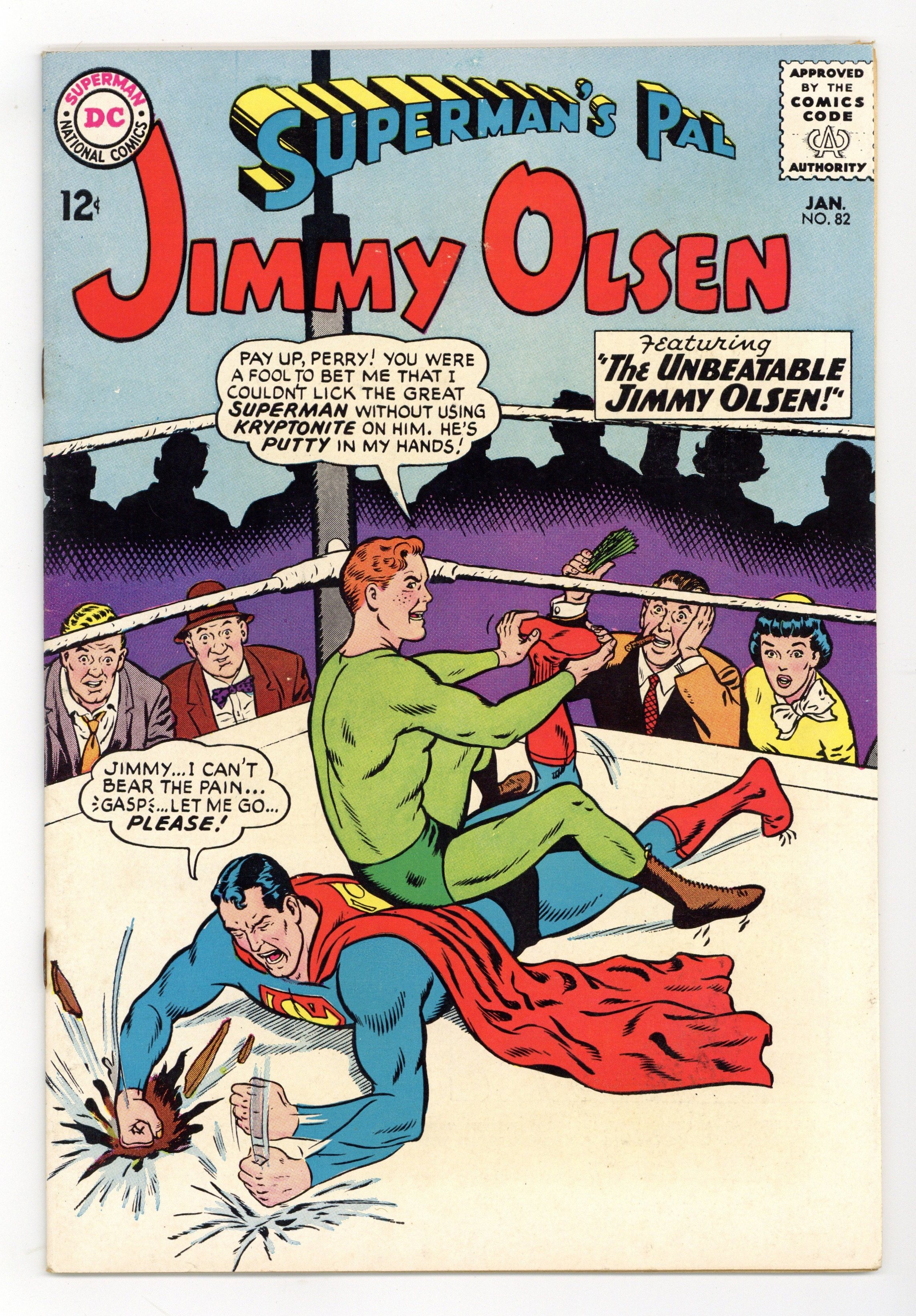 Cover pencils by Curt Swan, inks by George Klein. Salute to Courage public service announcement, script by Jack Schiff, pencils by Sheldon Moldoff. Jimmy Olsen's Magic Gloves!, script by Leo Dorfman, pencils by Curt Swan, inks by George Klein; Jimmy obtains magic gloves that will siphon off other people's abilities, however, he must be careful about whose talents they absorb. The Wedding of Magi and Sandra!, script by Jerry Siegel, pencils by Curt Swan, inks by George Klein; When things begin to get too serious in the romance of Sandra and Magi, Jimmy decides to kill off his alter-ego, Magi The Magnificent. The Unbeatable Jimmy Olsen, script by Jerry Siegel, pencils by George Papp and Curt Swan (page 3 panel 4 only), inks by George Papp and George Klein (page 3 panel 4 only). 36 Pages, Full Color. Cover price $0.12.
