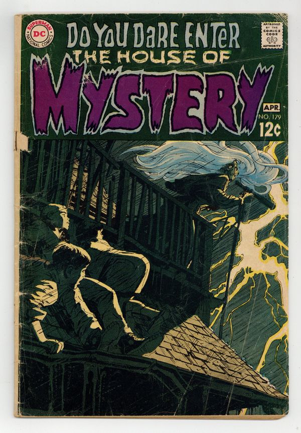Cover by Neal Adams. Featuring: 1 page House of Mystery introduction "Welcome to the House of Mystery" by Joe Orlando; 6 page story "Sour Note" written by E. Nelson Bridwell and drawn by Jerry Grandenetti & George Roussos; 3 page Cain's True Case Files story "The Man Who Murdered Himself" written by Marv Wolfman and drawn by Berni Wrightson (first pro work); 1 page Page 13 filler "Roll The Lucky Dice" written by Joe Orlando and drawn by Sergio Aragones; 2 page Cain's Game Room filler by Sergio Aragones; 10 page story "The Widow's Walk" written by Howie Post and drawn by Neal Adams & Joe Orlando; 1 page Cain's True Case Files filler "The Dead Tell Tales." 36 Pages, Full Color. Cover price $0.12.
