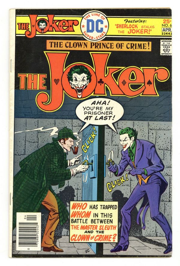 $22.50Cover by Ernie Chan. "Sherlock Stalks the Joker!," script by Denny O'Neil, pencils by Irv Novick, inks by Tex Blaisdell; The Joker's latest crime spree has him matching wits with Clive Sigerson, an actor convinced that he is his starring role - Sherlock Holmes! 36 pgs., full color. $0.25. Cover price $0.25.