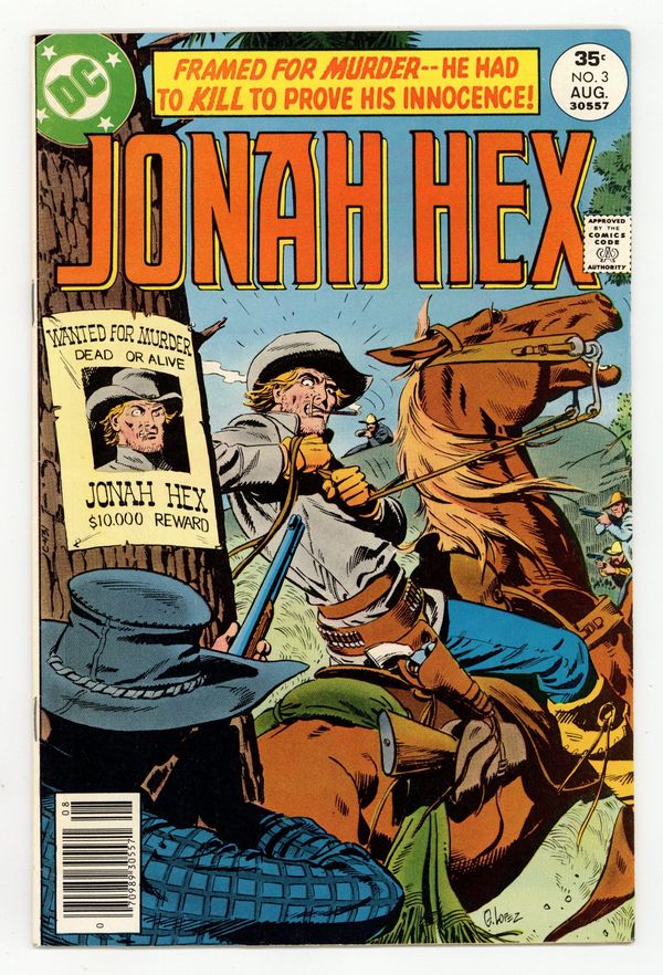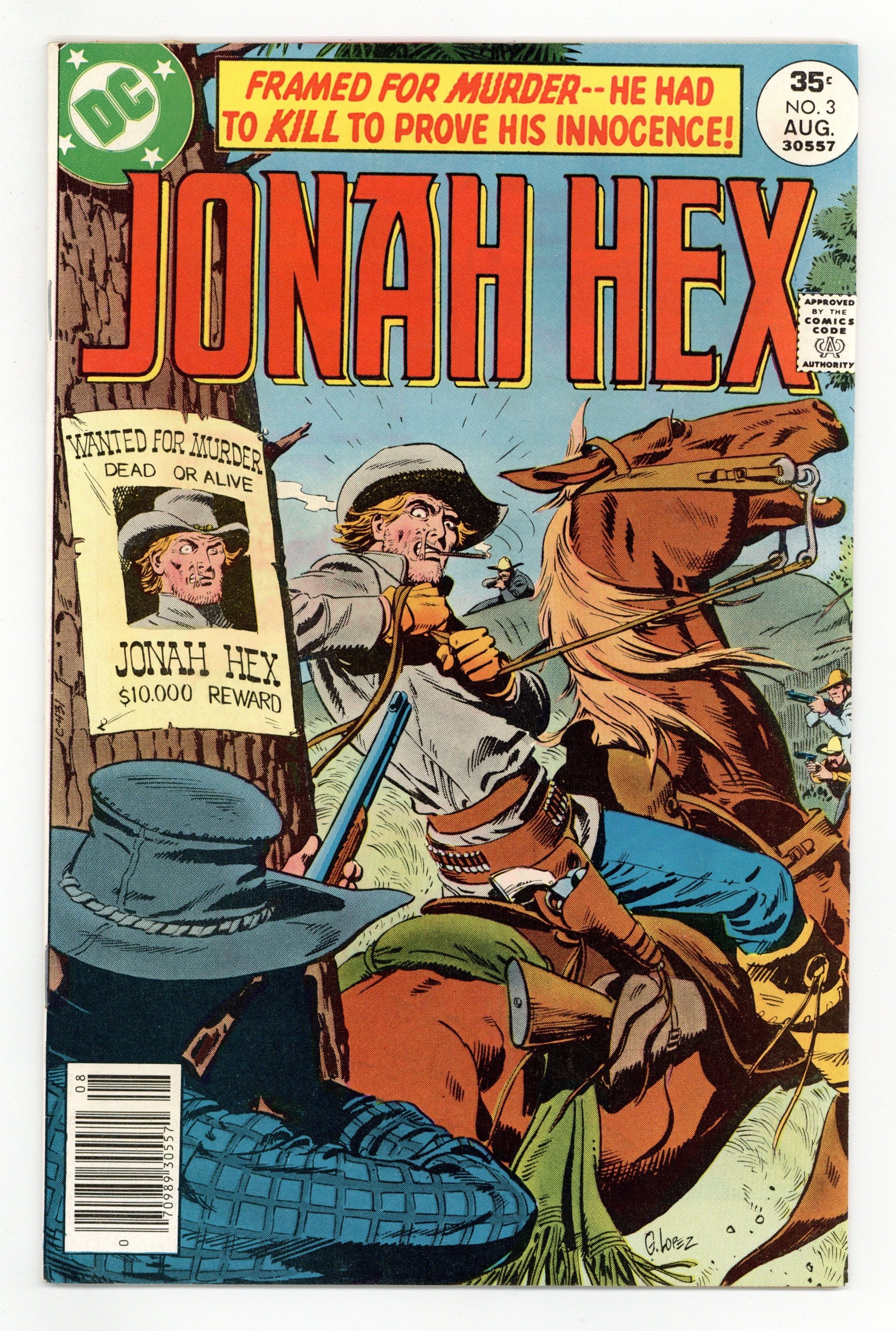 $23.50First 35c cover-priced issue. The Fugitive! - Written by Michael Fleisher. Art and Cover by José Luis García-López. Framed for murder -- Jonah had to kill to prove his innocence! Plus: Batman and Robin in 1-page Hostess Cup Cakes ad "Birds of a Feather" with pencils by Curt Swan; 2/3-page DC Publishorial "Remember the Five-Cent Phone Call?" by Jenette Kahn; and 1/3-page DC Profiles #10: Trevor Von Eeden. 32 pages, full color. Cover price $0.35.
