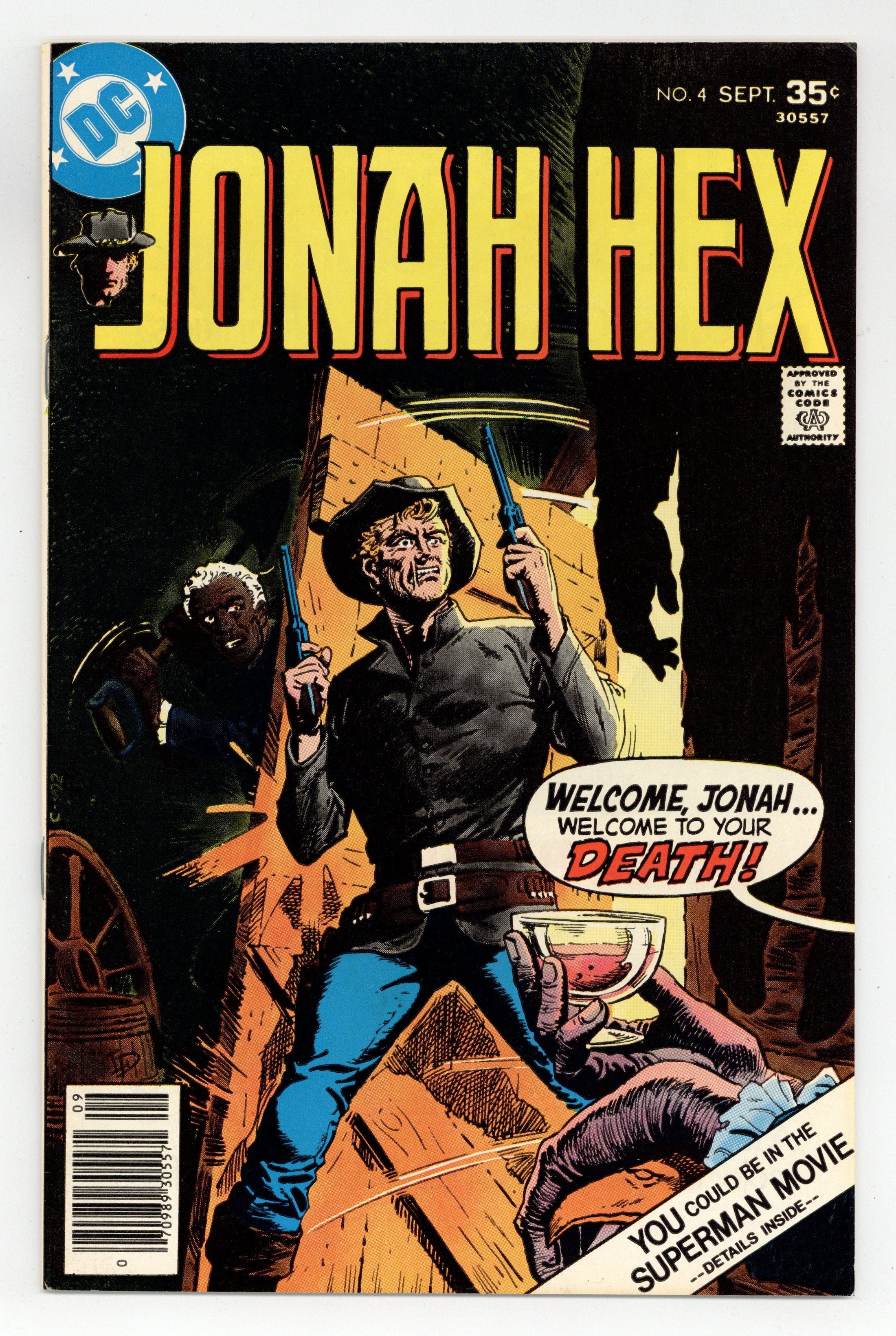 Mr. Turnbull hires the Chameleon to kill Jonah in "The Day of the Chameleon!" Characters: Jonah Hex; Ned Landon; The Chameleon; Joanna Mosby; Mr. Turnbull; Solomon. Written by Michael Fleisher, with art by Jose Luis Garcia-Lopez. Cover by Luis Dominguez. Cover price $0.35.