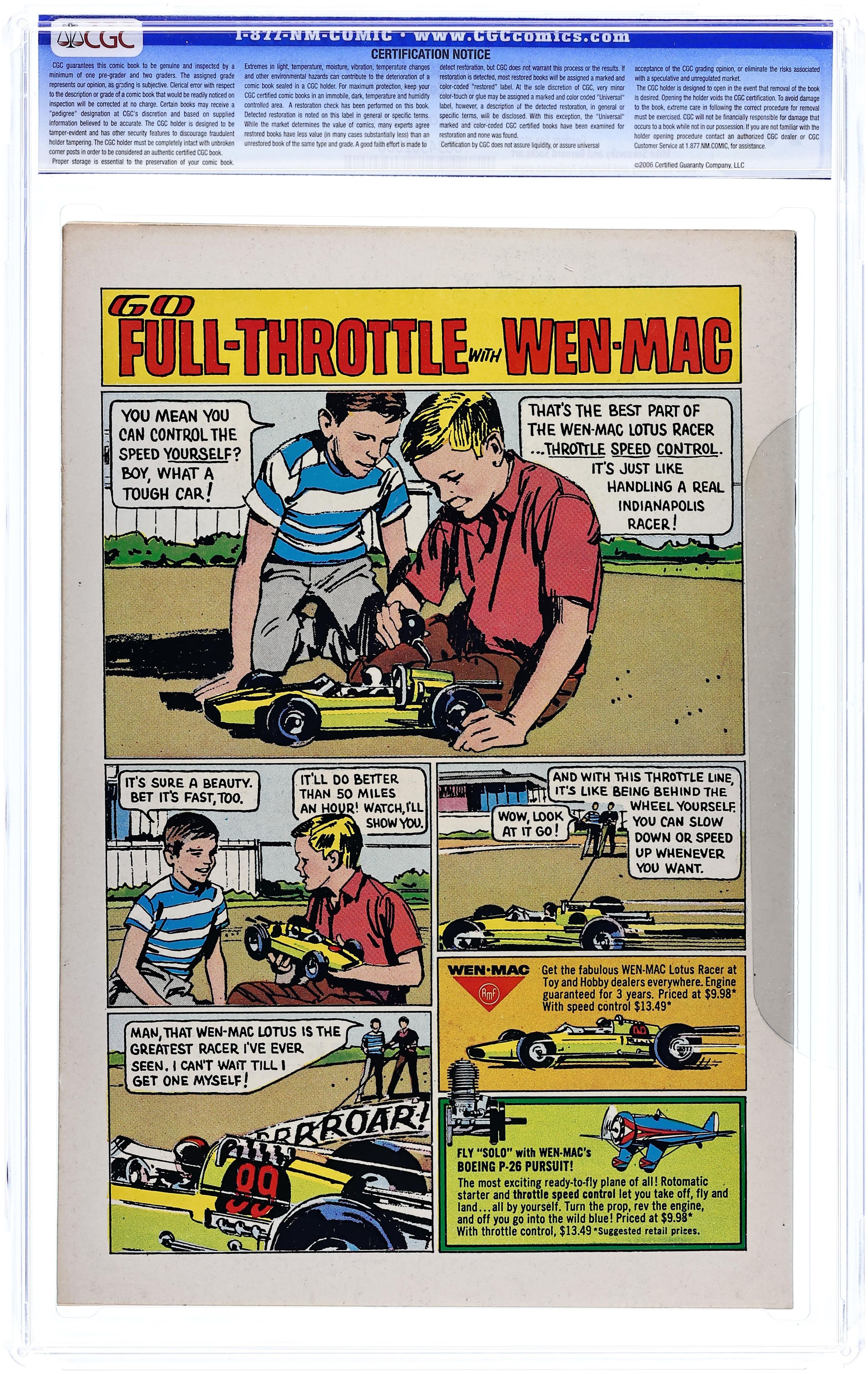 Ends Dec 8 8:43 PM CST Bid History 4 bids Current Bid $34 Your Secret Max Bid If you'd like to bid, please log in or register. Cover pencils by Mike Sekowsky, inks by Murphy Anderson (center panel) and Bernard Sachs (vignettes). Crisis on Earth-A!, script by Gardner Fox, pencils by Mike Sekowsky, inks by Bernard Sachs; The JSA defeats the Lawless League and then the three monstrous creatures created by the Johnny Thunder of Earth-1; He concedes defeat and tells the Thunderbolt to turn back time to before he ever heard of him; T-Bolt then later stops Johnny when he's about to wonder if he has a counterpart on Earth-1 again, since all previous events were erased from everyone's minds. Star Names! fact page by Julius Schwartz. Nature's Bill of Rights public service announcement, script by Jack Schiff, art by Sheldon Moldoff. Rocky and Bullwinkle star in a one-page Cheerios ad. Cover price $0.12.
