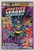 $25.00Cover pencils by Mike Sekowsky, inks by Murphy Anderson. Reprints. Challenge of the Weapons Master!, script by Gardner Fox, pencils by Mike Sekowsky, inks by Bernard Sachs; Having found an ancient book that appears to indicate that he once defeated the JLA, Xotar travels from 11,960 to the present to test four weapons against the Justice League, in order to determine which weapon will help him defeat the Intersolar Police of his own day; But the JLA counters each of Xotar's weapons and returns him to face justice in his own time. Secret of the Sinister Sorcerers!, script by Gardner Fox, pencils by Mike Sekowsky, inks by Bernard Sachs. The Slave Ship of Space!, script by Gardner Fox, pencils by Mike Sekowsky, inks by Bernard Sachs. 84 pgs. $0.25. Cover price $0.25.