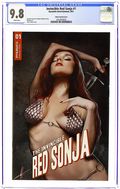 Limited 1 for 10 Retailer Incentive Variant Cover. Written by Jimmy Palmiotti & Amanda Conner. Art by Moritat. Cover by Carla Cohen. Written by the award-winning fan favorites AMANDA CONNER and JIMMY PALMIOTTI, Red Sonja finds herself on a spectacular journey filled with pirates, mermaids, princesses, and political intrigue as the threat of two kingdoms hangs in the balance. All this, plus the spectacular art of MORITAT and a cover by AMANDA CONNER and PAUL MOUNTS makes THE INVINCIBLE RED SONJA a series not to be missed! In fact it's so great, we had to launch a whole new title for it! 32 pages, full color. Rated T+ Cover price $3.99.