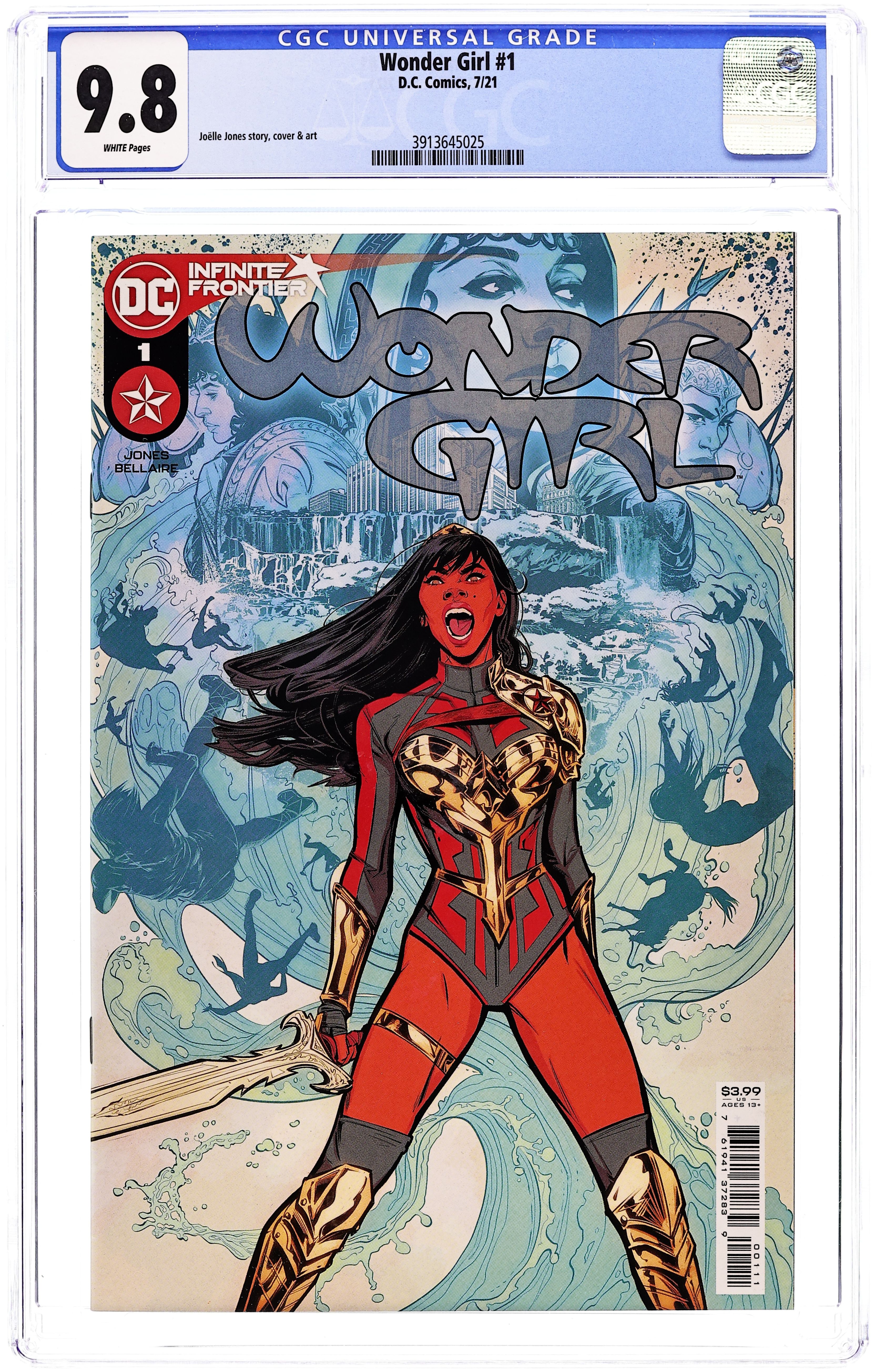 Infinite Frontier Tie-In - Homecoming: Part 1 - Written, Art and Cover by Joelle Jones. The story of Yara Flor starts here! Raised in the faroff land of Boise, Idaho, Yara Flor has always felt something was missing from her life—and now she is headed to Brazil to find it. Little does she know her arrival will set off a series of events that will change the world of Wonder Woman forever. Her return has been prophesied, and with that prophecy comes the undivided attention of benevolent gods from pantheons beyond. Danger lurks around every corner—but is this young hero ready for her journey? Find out in a debut issue you absolutely cannot miss! Spinning out of the bestselling Future State: Wonder Woman, acclaimed writer/artist Joëlle Jones makes a triumphant return to the character to officially introduce her into the DC Universe. You think you know Wonder Girl, but you have never seen her like this! 32 pages, full color. Rated T+ Cover price $3.99.