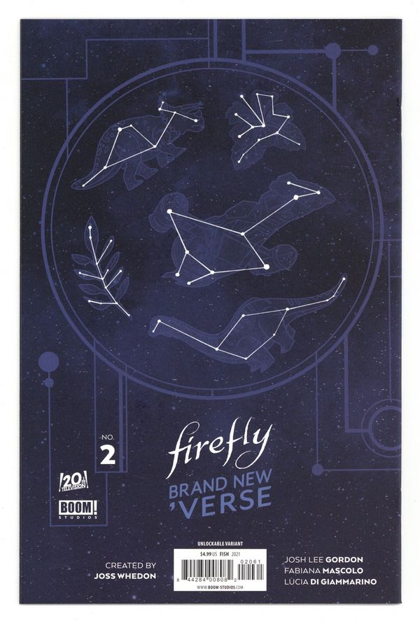 Written by Josh Lee Gordon. Art by Fabiana Mascolo. Cover by Veronica Fish. It's been 20 years since the events of Firefly, but Serenity can't seem to keep out of trouble - which means Zoe and her daughter Emma are in for a world of hurt! With the Blue Sun on their tail, they turn to the only people they can trust - Kaylee and Simon. But what happened to Mal... and what does it mean for the new crew of Serenity? 24 pages, full color.