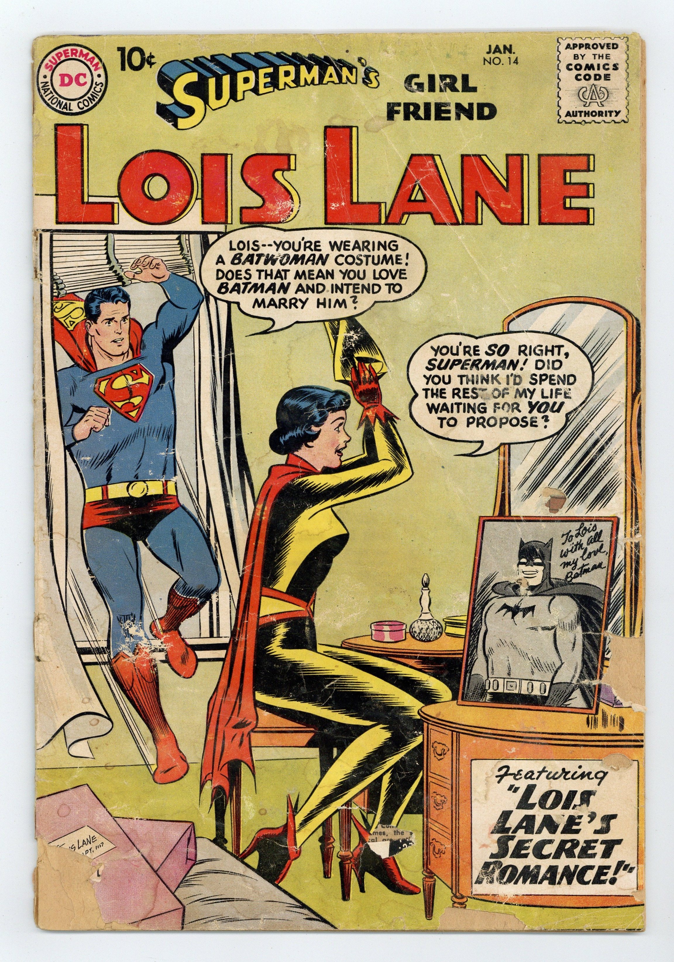 Cover pencils by Curt Swan, inks by Stan Kaye. Three Nights in the Fortress of Solitude!, script by Otto Binder, art by Kurt Schaffenberger; Lois spends three nights in the Fortress of Solitude, as Superman schemes to prove it would not be the ideal honeymoon cottage. Lois Lane's Soldier Sweetheart!, script by Robert Bernstein, art by Kurt Schaffenberger; Lois falls for a young soldier whose father is a movie producer. Lois Lane's Secret Romance!, script by Jerry Siegel, art by Kurt Schaffenberger; Supergirl schemes to get Lois married to Superman. 36 Pages, Full Color. Cover price $0.10.