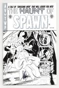 Published Dec 2020 by Aardvark-Vanaheim.$23.00Classic Platinum Variant A Cover - Signed by Dave Sim - Limited to 300 copies. A 48 page deluxe, expanded edition with updated art, new covers, and rarities! Cover by Todd McFarlane, Dave Sim. Story by Dave Sim. Art by Todd McFarlane, Dave Sim. "Crossing Over!" Guest-starring Cerebus. Todd Mcfarlane's masterful inking style radically changed the aesthetics of comic-books forever. Transforming the 1980s homogeneous bullpen style of the Big 2 to the hyper-dynamic style that dominates the modern era. McFarlane's loose, detailed, energetic art alongside Sims cartoon realism brush and line work highlights the power of each artist in the pages of this new edition of SPAWN No. 10! Still as fresh and relevant today as when it first appeared, Dave Sim and Aardvark-Vanaheim have partnered with The Waverly Press to present Sim's new modified version of this classic tale published nearly three decades ago, expanded with new content and rarities from this comics milestone. While the original edition of SPAWN No. 10 was published in full color, this special edition - at Dave Sims insistence - presents the story in black and white. In the original edition, McFarlane drew what Dave Sim has called the definitive Cerebus (...more people saw Todd's Cerebus that one month than had seen my Cerebus in the decade prior to SPAWN No. 10). "Remastered" pages with Dave Sim's new art! Working gingerly and painstakingly around his career-ending (2015) wrist ailment, Sim fulfilled what he calls a last ambition to render the Kitchener Sequence as he originally pictured it. He also redrew the Cerebus figures throughout the issue. B&W. 48pgs.