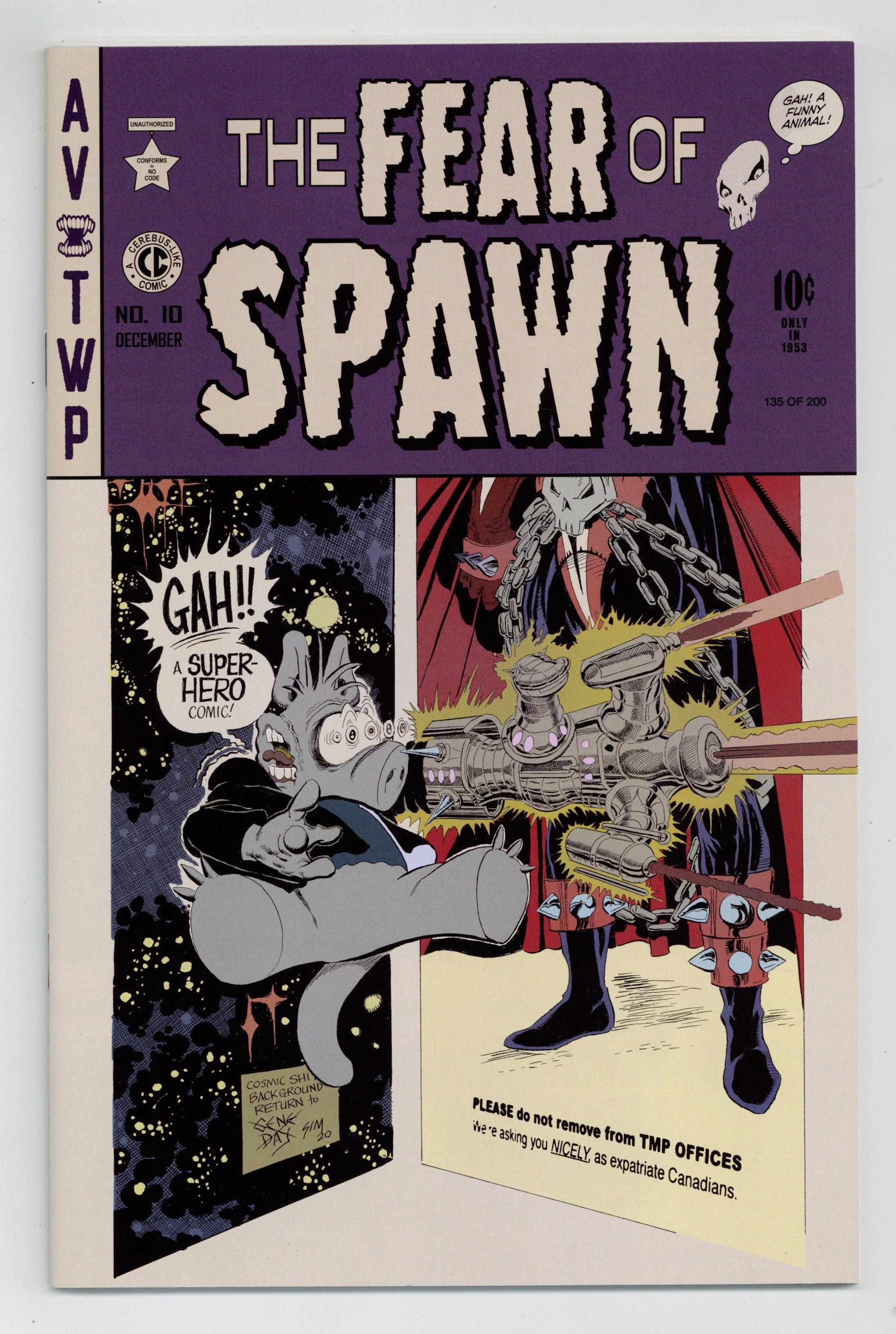 Published Dec 2020 by Aardvark-Vanaheim.$32.00Classic Cover C variant - Limited to 200 copies. A 48 page deluxe, expanded edition with updated art, new covers, and rarities! Cover by Todd McFarlane, Dave Sim, Benjamin Hobbs. Story by Dave Sim. Art by Todd McFarlane, Dave Sim. "Crossing Over!" Guest-starring Cerebus. Todd Mcfarlane's masterful inking style radically changed the aesthetics of comic-books forever. Transforming the 1980s homogeneous bullpen style of the Big 2 to the hyper-dynamic style that dominates the modern era. McFarlane's loose, detailed, energetic art alongside Sims cartoon realism brush and line work highlights the power of each artist in the pages of this new edition of SPAWN No. 10! Still as fresh and relevant today as when it first appeared, Dave Sim and Aardvark-Vanaheim have partnered with The Waverly Press to present Sim's new modified version of this classic tale published nearly three decades ago, expanded with new content and rarities from this comics milestone. While the original edition of SPAWN No. 10 was published in full color, this special edition - at Dave Sims insistence - presents the story in black and white. In the original edition, McFarlane drew what Dave Sim has called the definitive Cerebus (...more people saw Todds Cerebus that one month than had seen my Cerebus in the decade prior to SPAWN No. 10). "Remastered" pages with Dave Sim's new art! Working gingerly and painstakingly around his career-ending (2015) wrist ailment, Sim fulfilled what he calls a last ambition to render the Kitchener Sequence as he originally pictured it. He also redrew the Cerebus figures throughout the issue. B&W. 48pgs.