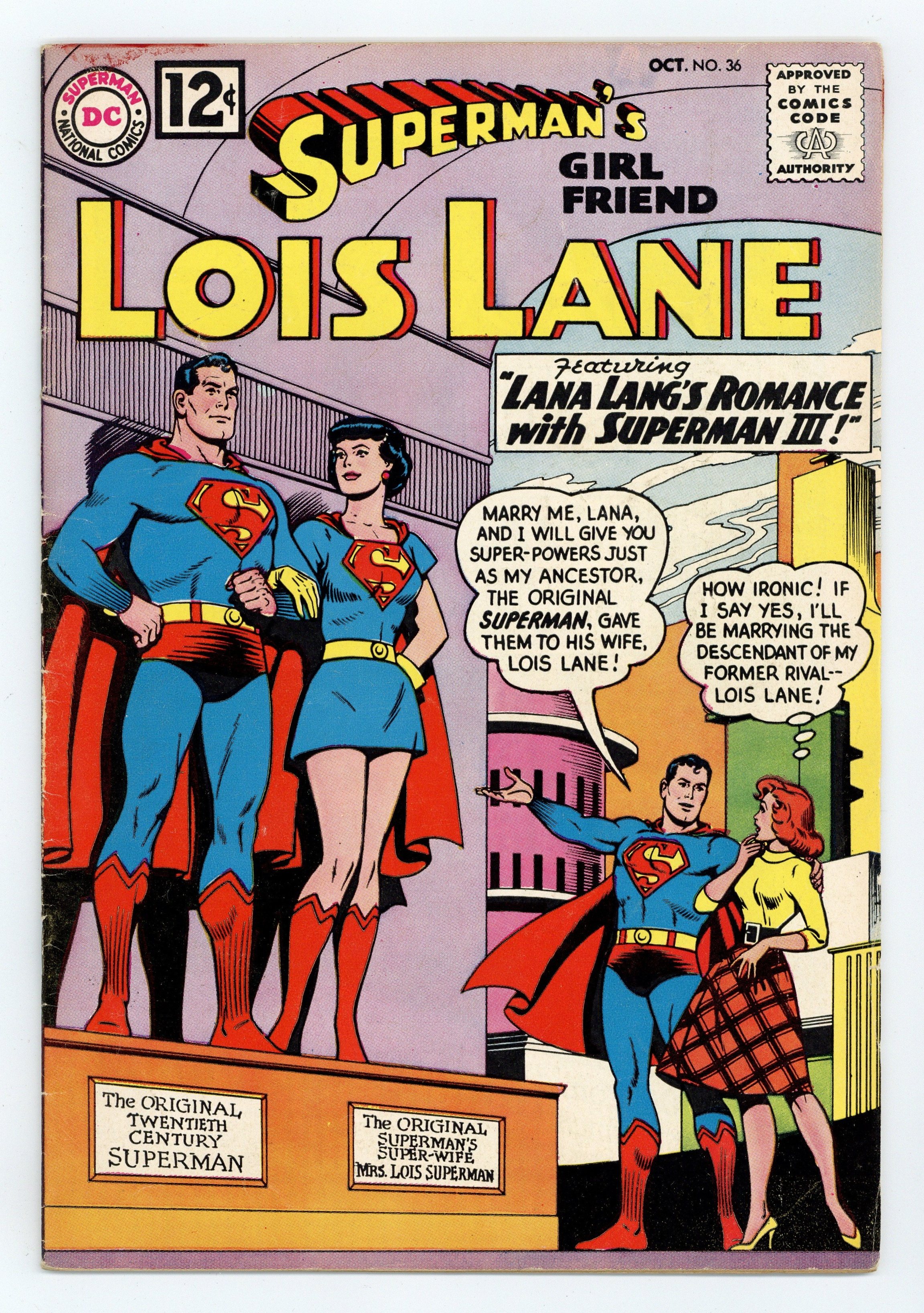 Cover art by Kurt Schaffenberger. The Day Lois Lane Vanished!, art by Kurt Schaffenberger; Lois returns from a weekend vacation to find that nobody knows who she is and that Lois Lane no longer exists. House ad for Adventure Comics #300. The Madam Jekyll of Metropolis!, art by Kurt Schaffenberger; After exposure to a high-power nuclear beam and some Red Kryptonite, Lois becomes a Jekyll-and-Hyde creature and plans to kill Superman. Lana Lang's Romance with Superman III!, script by Jerry Siegel, pencils by Curt Swan, inks by George Klein; Lois marries Superman and Lana Lang is sent to the future where she marries Superman III, Superman and Lois's grandson. 36 Pages, Full Color. Cover price $0.12.