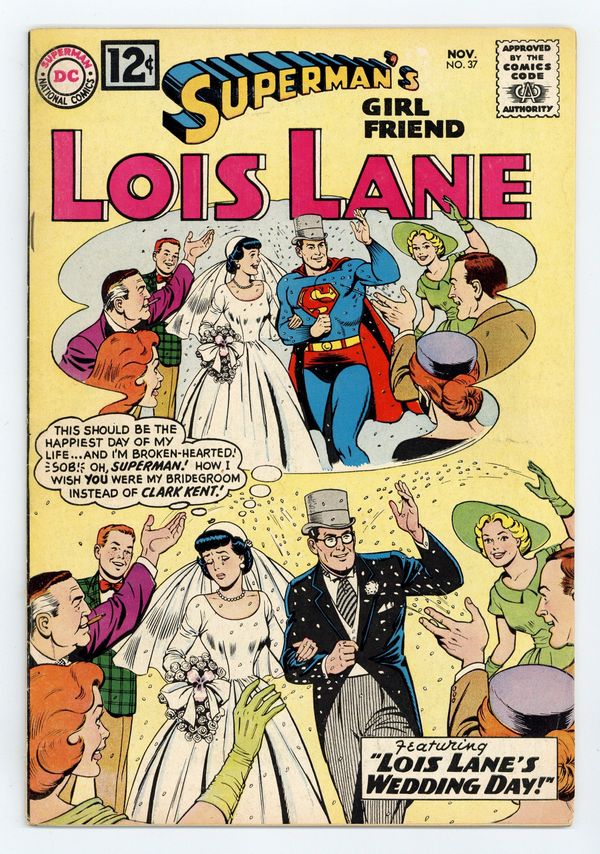 Cover art by Kurt Schaffenberger. The Forbidden Box!, pencils by Curt Swan, inks by George Klein; Superman decides to test Lois to see if she can resist her curiosity by leaving her a sealed box that she is not to open. The Immortal Lois Lane!, art by Kurt Schaffenberger; Lois believes she has been transported into the past where she meets Leonardo da Vinci and battles Lucretia Borgia (a Lana Lang look-alike) for his attentions, eventually becoming the model for his painting of the Mona Lisa. House ad for Batman #151. House ad for World's Finest Comics #129. Lois Lane's Wedding Day!, script by Leo Dorfman, art by Kurt Schaffenberger; Lois goes undercover to expose a swindler running a lonely hearts' club scam, but he turns the tables on her by hiring a real minister so that her fake wedding to Clark Kent turns out to be real. Special note: Letter by Lone Star Comics/Mycomicshop owner Buddy Saunders in letter column! 36 Pages, Full Color. Cover price $0.12.