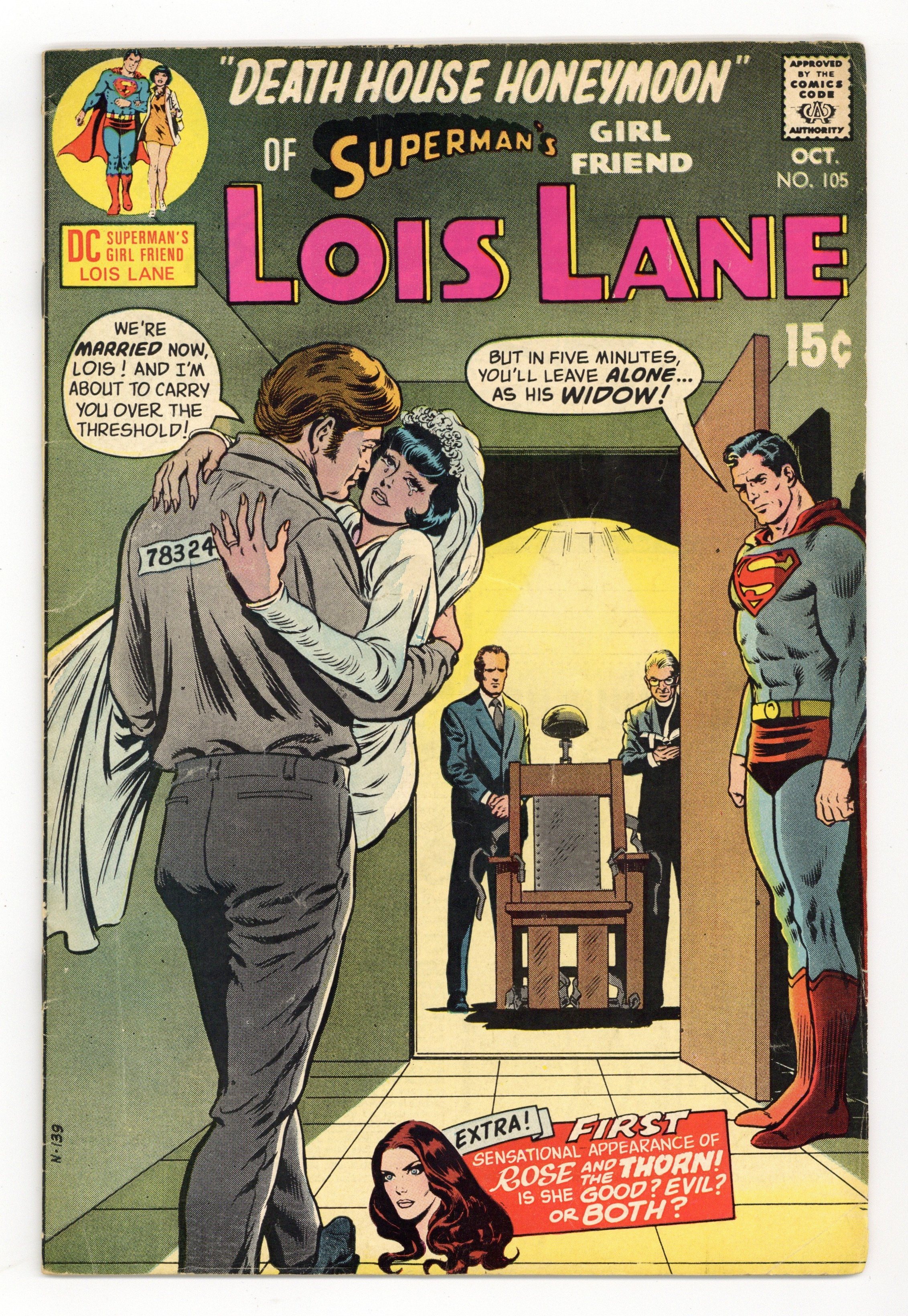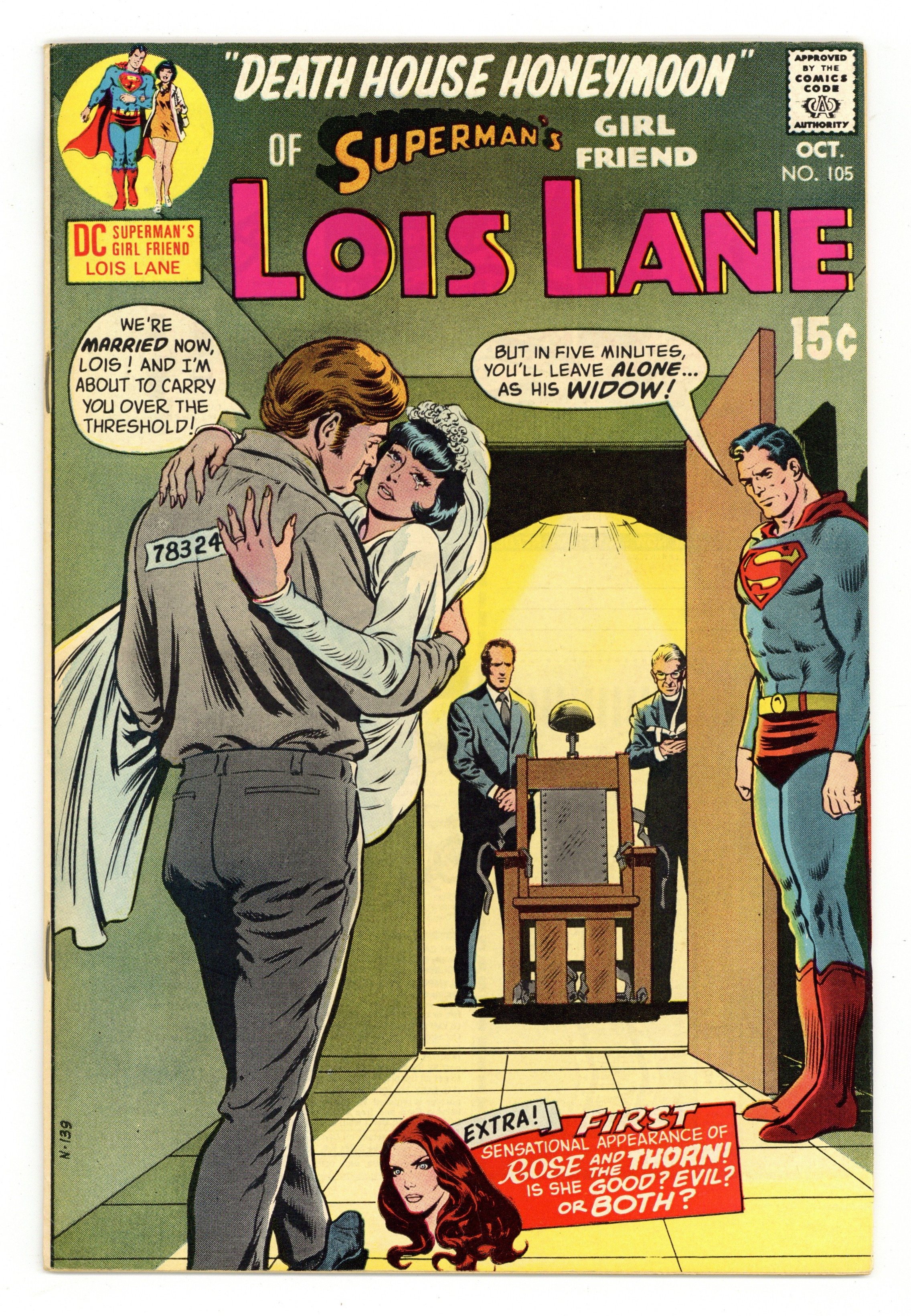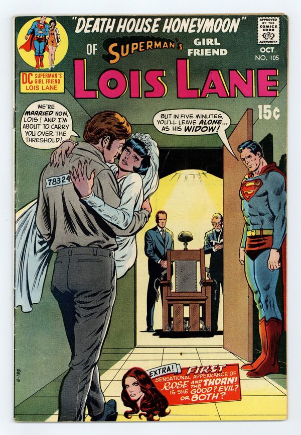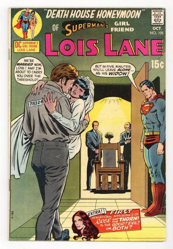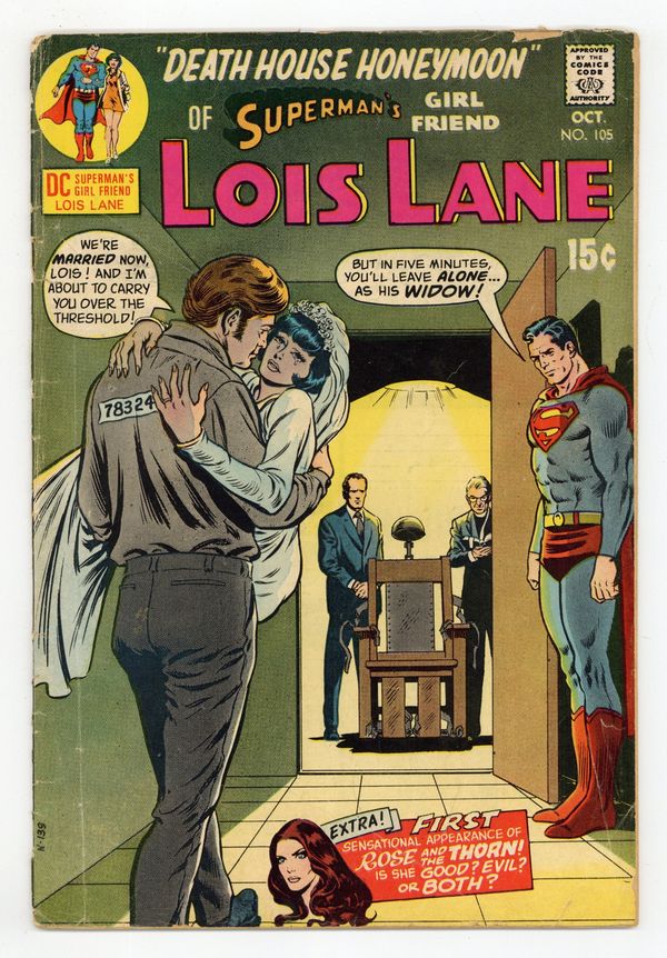 1st appearance and origin of Rose and Thorn. Cover pencils by Curt Swan, inks by Murphy Anderson. Death House Honeymoon!, script by Robert Kanigher, pencils by Art Saaf and Ross Andru, inks by Mike Esposito; Johnny Adonis, a murderer on death row, asks Lois to marry him as his last request. Night of the Thorn, script by Robert Kanigher, pencils by Ross Andru, inks by Mike Esposito; Rose Forrest becomes the Thorn to avenge her father's murder by The 100. 36 Pages, Full Color. Cover price $0.15.