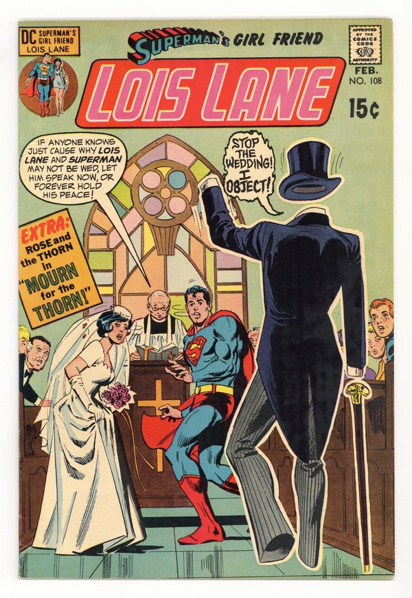 Cover art by Dick Giordano. The Spectre Suitor!, script by Cary Bates, pencils by Werner Roth, inks by Vince Colletta; When Lois saves the life of a wealthy man, she attracts the attention of one of his ghostly ancestors, who draws her back in time to London in November 1888 -- where she learns that he was the infamous Jack the Ripper. Mourn for the Thorn!, script by Robert Kanigher, pencils by Ross Andru, inks by Mike Esposito; Metropolis mourns when it appears that the Thorn has been struck down by the 100, but she intentionally faked her death when cornered by the mob. 1971 Superman Calendar (also works for the years 2010, 2021, 2027, 2038, 2049, and other years). 36 Pages, Full Color. Cover price $0.15.