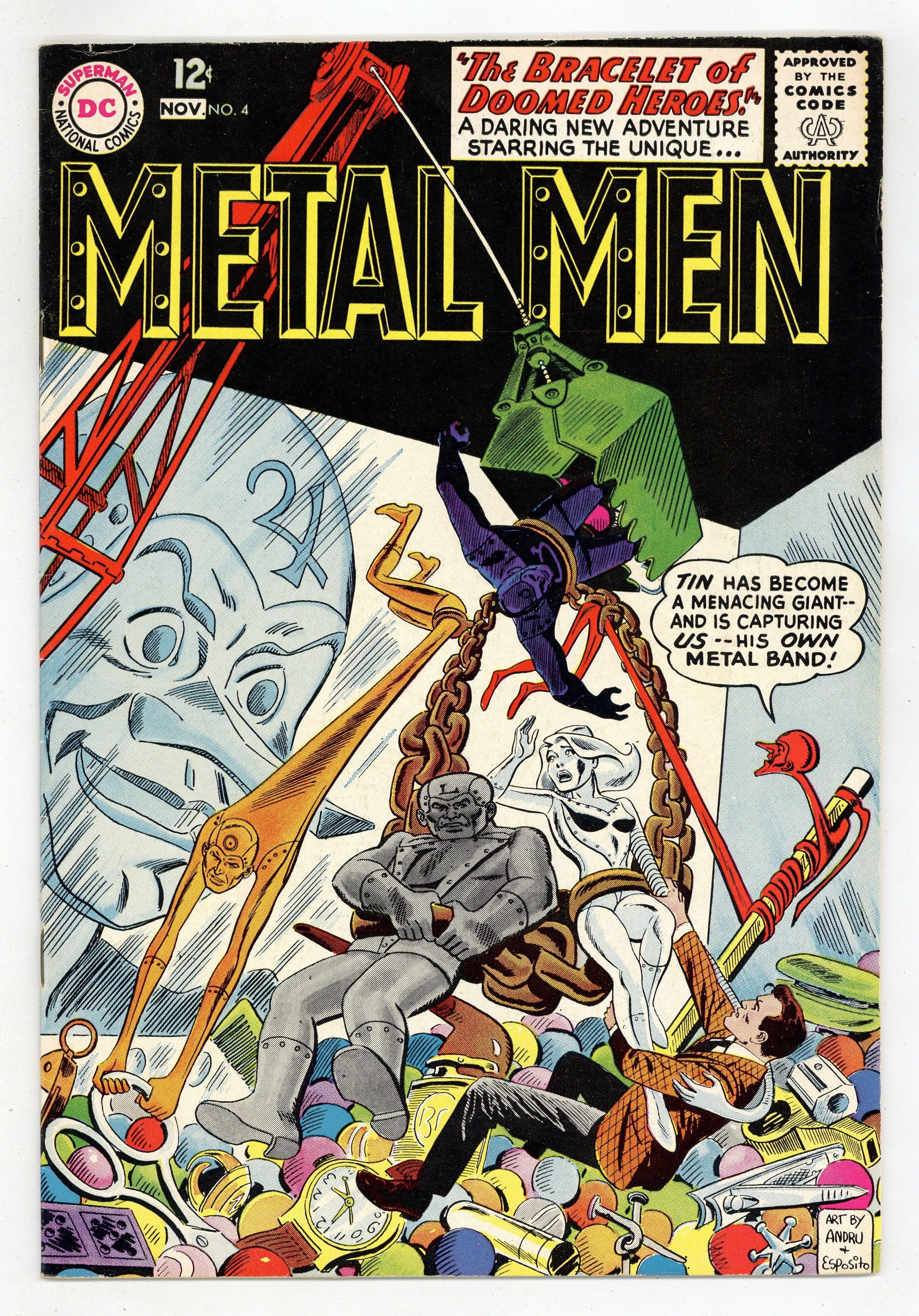 Tags: Hero/Villain Teams$25.00Cover pencils by Ross Andru, inks by Mike Esposito. Bracelet of Doomed Heroes!, script by Bob Kanigher, pencils by Ross Andru, inks by Mike Esposito; Tin is kidnapped by alien robots. 36 pgs. $0.12. Cover price $0.12.