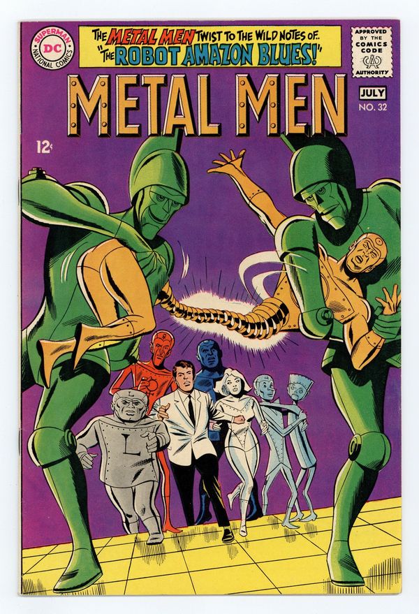 Cover pencils by Mike Sekowsky, inks by Jack Abel. The Metal Woman Blues, script by Otto Binder, pencils by Mike Sekowsky, inks by Mike Esposito; the Metal Men battle the Robot Amazons. 32 pgs. $0.12. Cover price $0.12.