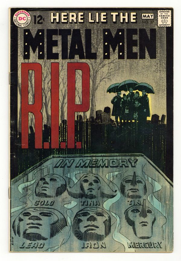 Cover pencils by Mike Sekowsky, inks by Dick Giordano. To Walk Among Men, script by Mike Sekowsky, pencils by Mike Sekowsky, inks by George Roussos; human identities for the Metal Men introduced. 36 pgs. $0.12. Cover price $0.12.
